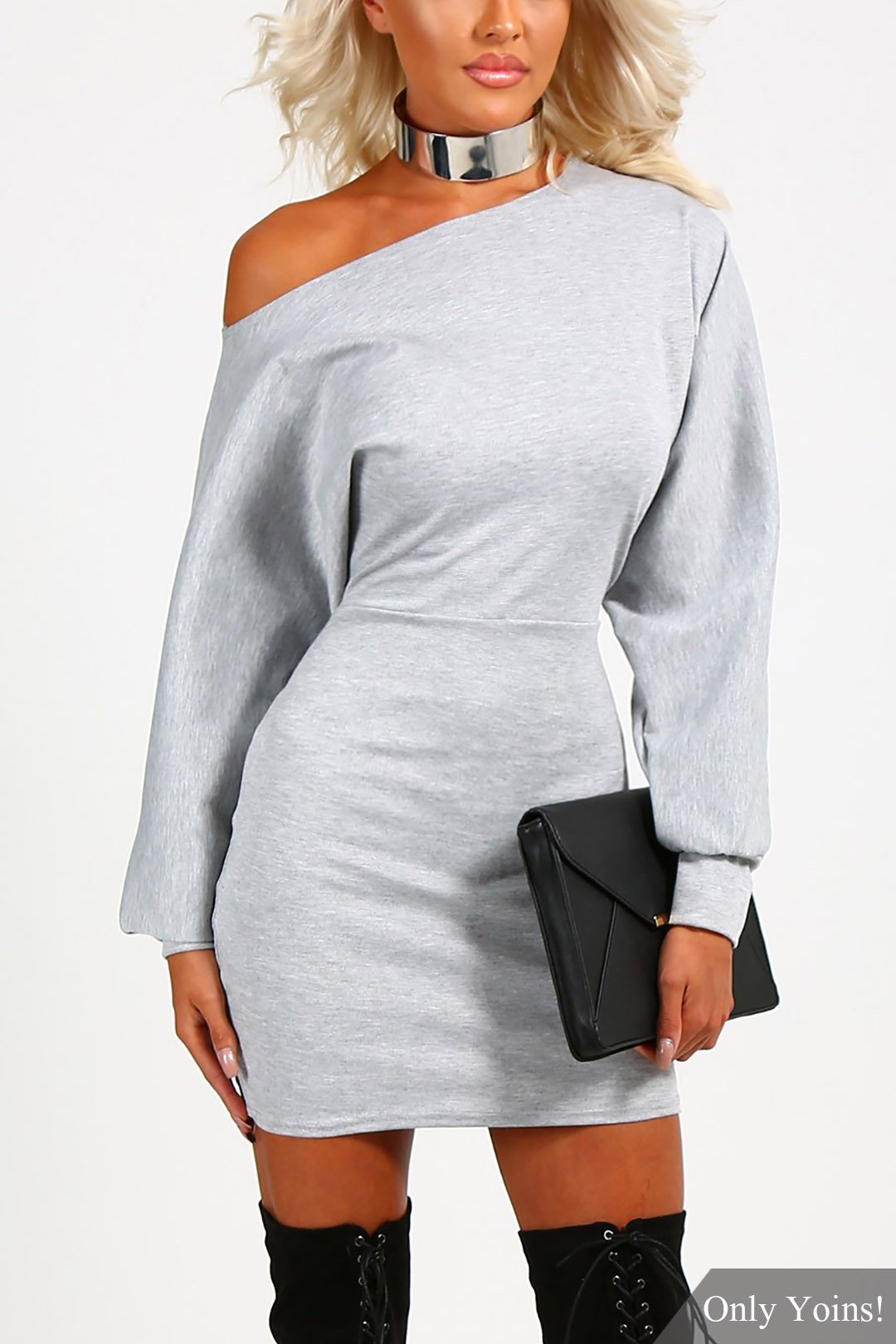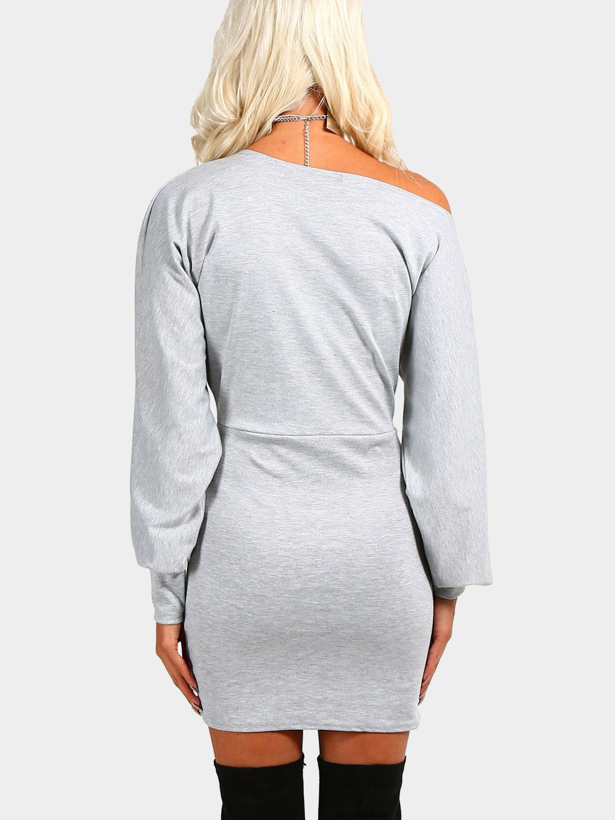 Grey Asymmetrical Long Sleeve Sexy Dress