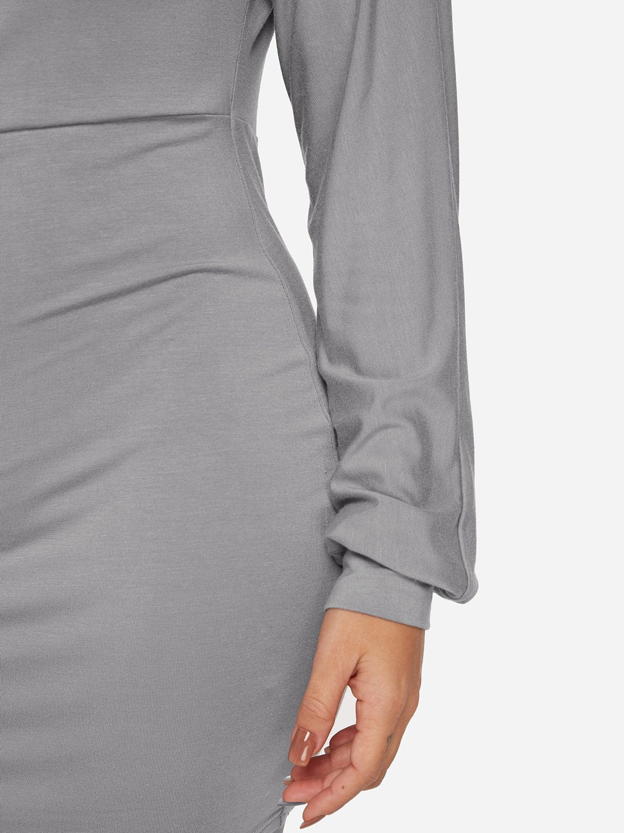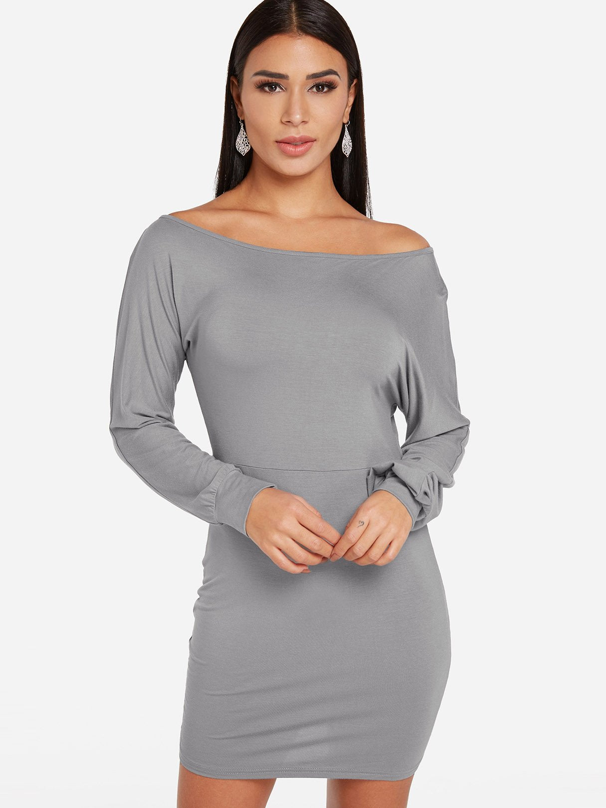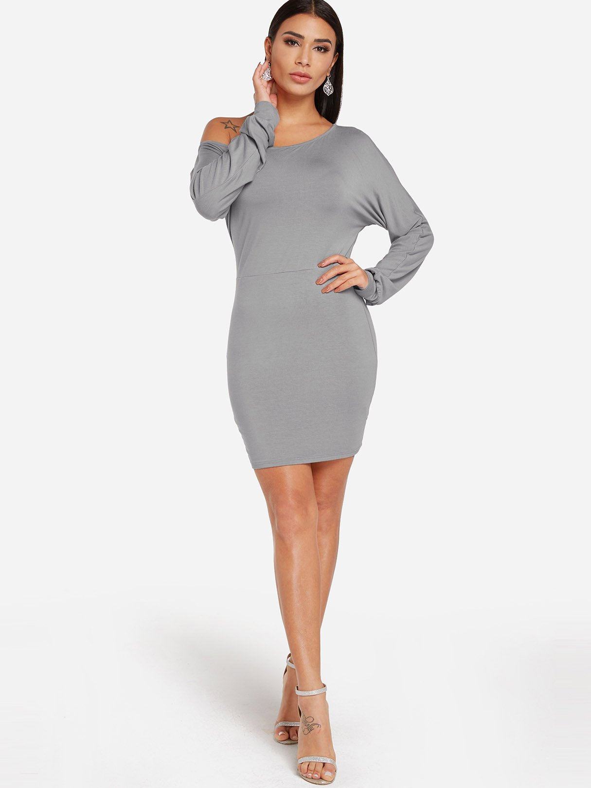 Grey One Shoulder Long Sleeve Plain Fashion Mini Dress