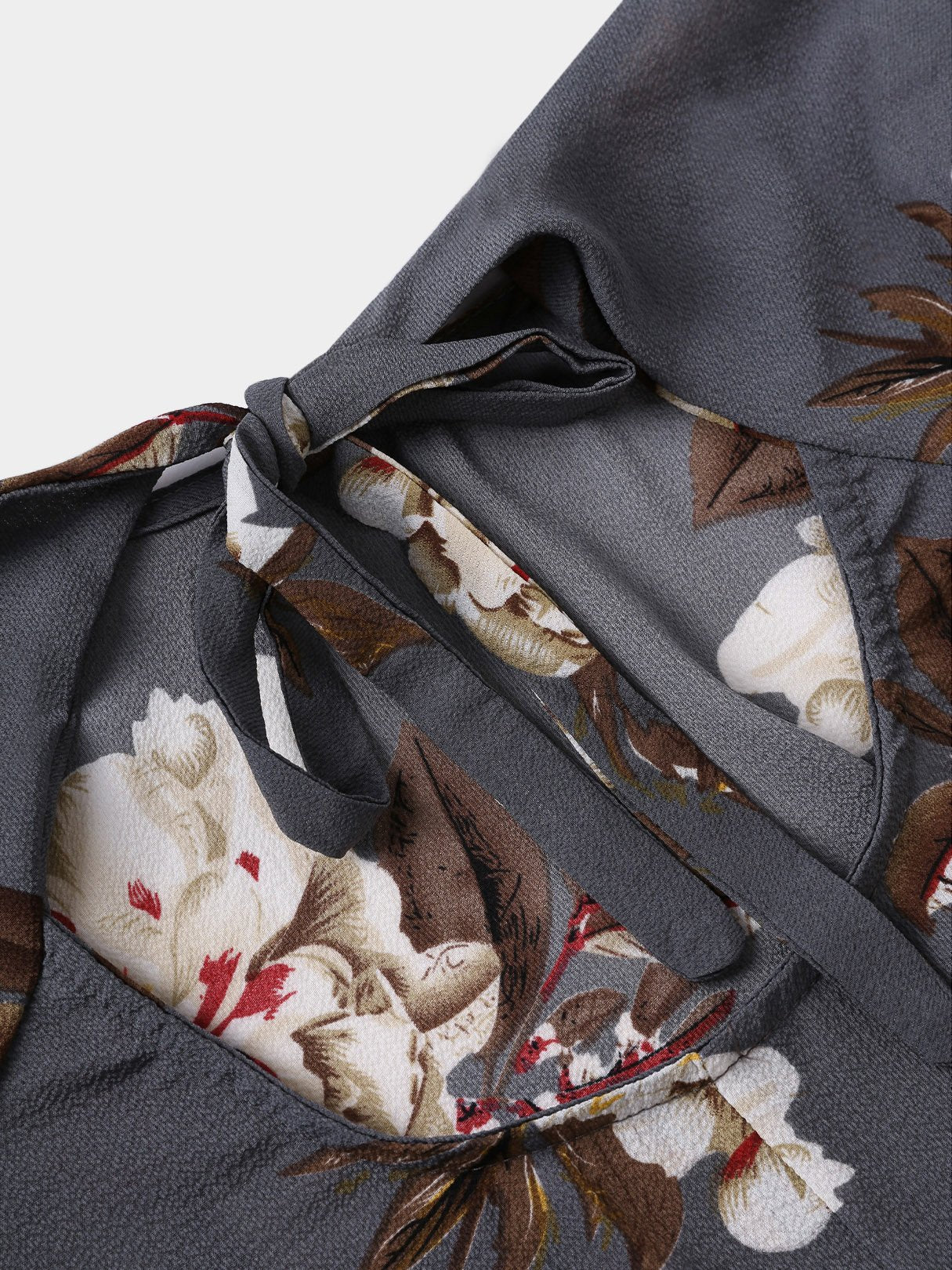 Material:PolyesterNeckline:Round NeckSeason:Spring,Summer,Autumn,WinterSleeves:Long SleevesPattern:Floral PrintStyle:Casual Style,Vacation StyleDetail:Backless Design,Lace-Up DesignLength:MiniFit:Regular FitOccasion:Vacation