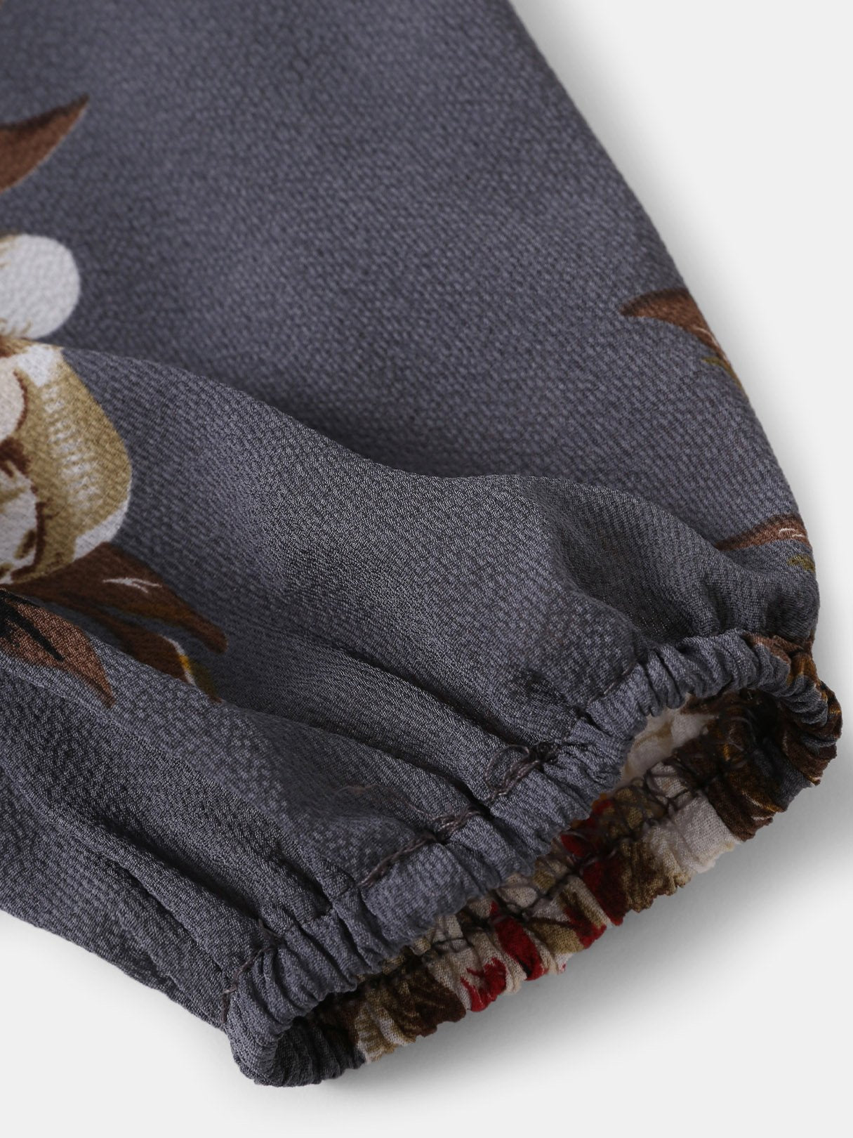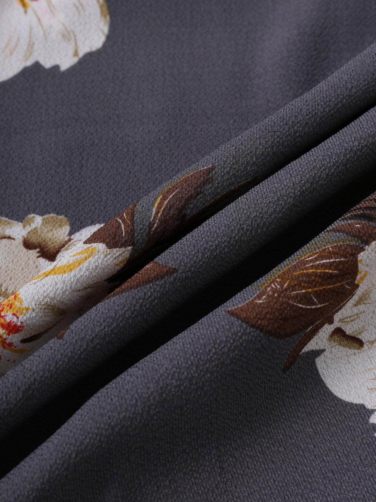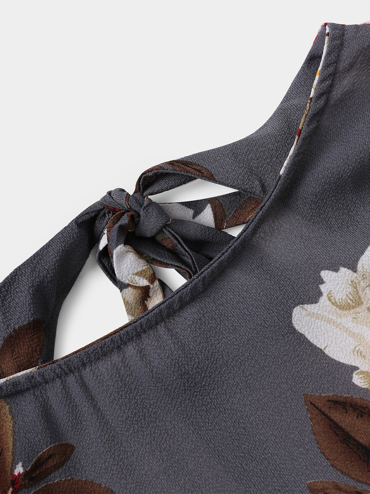Grey Round Neck Long Sleeve Floral Print Backless Lace-Up Mini Dresses - Grey / S is backordered and will ship as soon as it is back in stock.