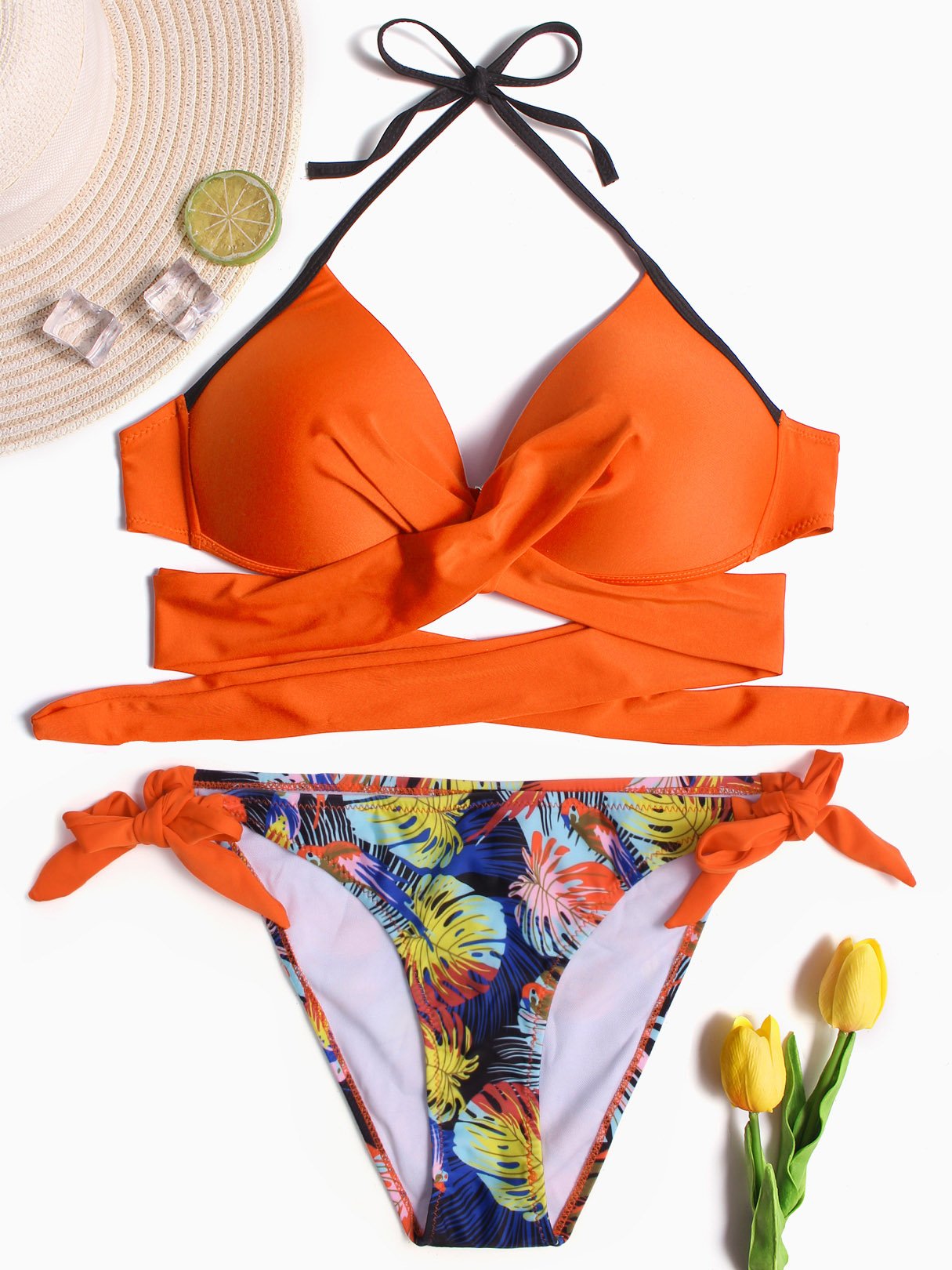 Halter Crossed Front Lace-Up Tie-Up Bikinis
