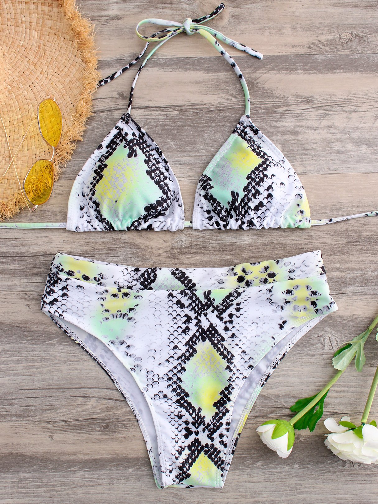 Halter Deep V Neck Sleeveless Animal Backless Bikinis