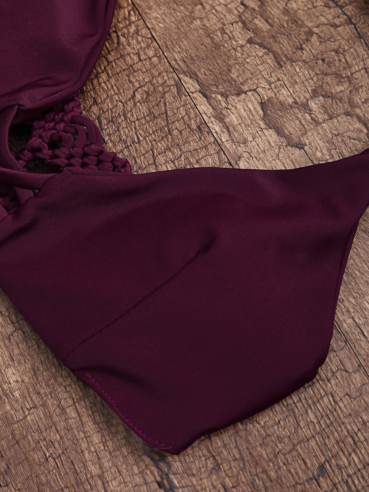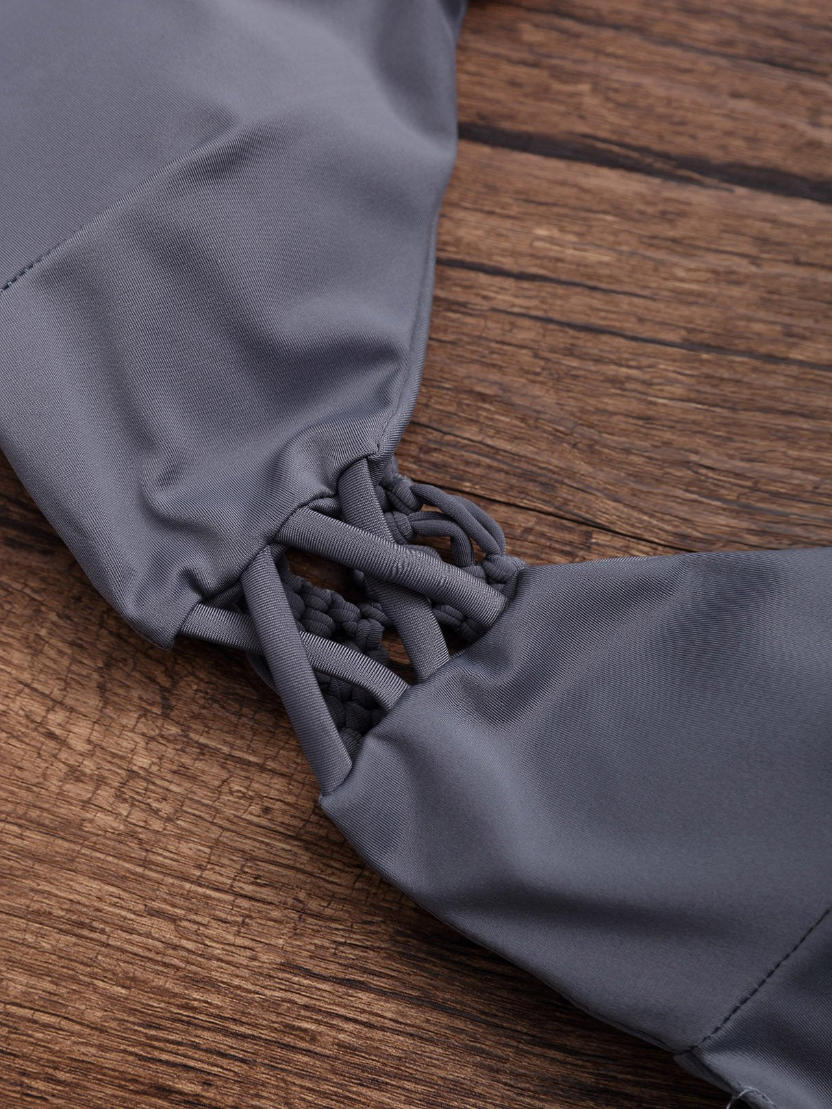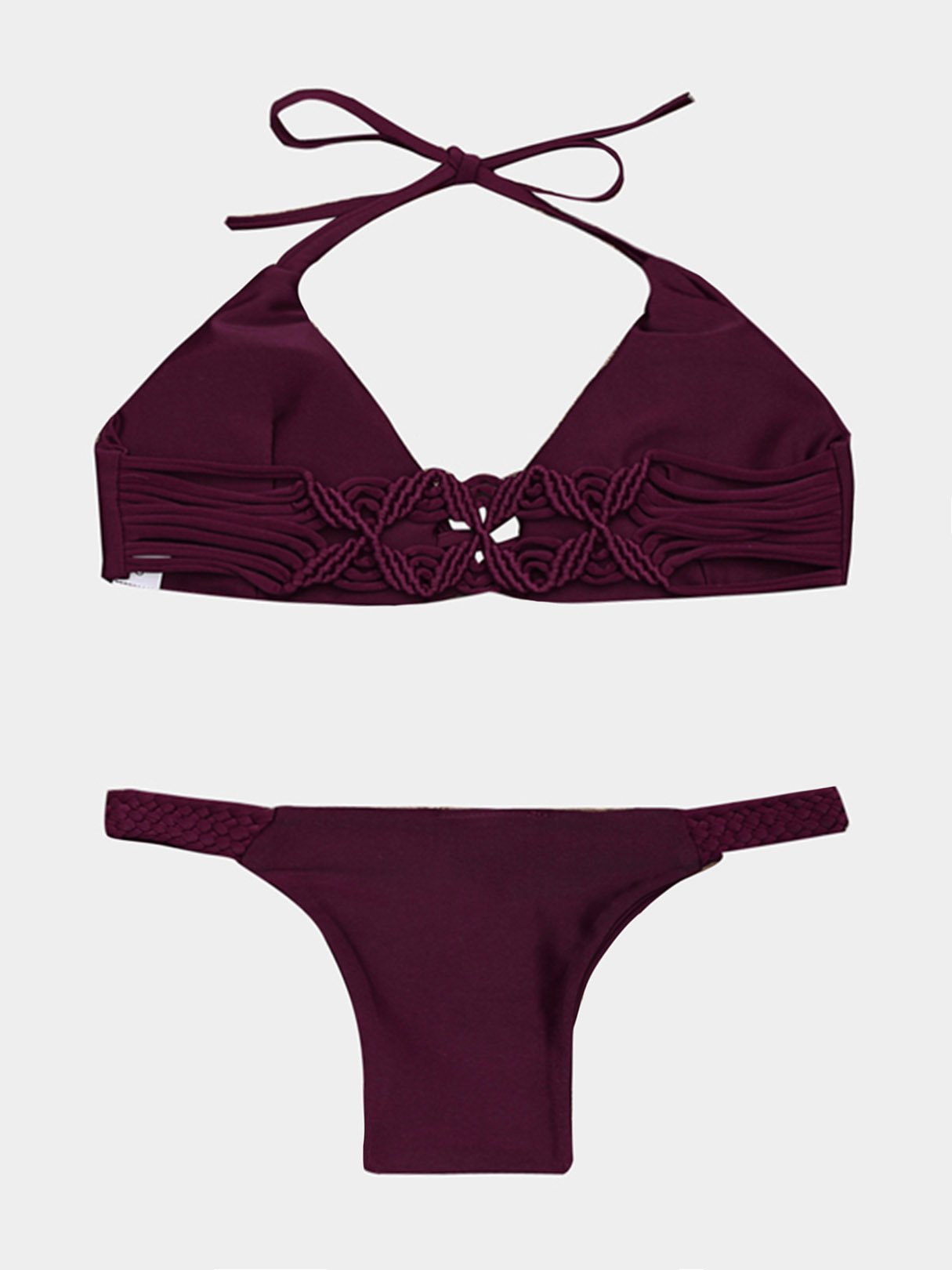 Halter Deep V Neck Sleeveless Plain Lace-Up Two Piece Bikinis