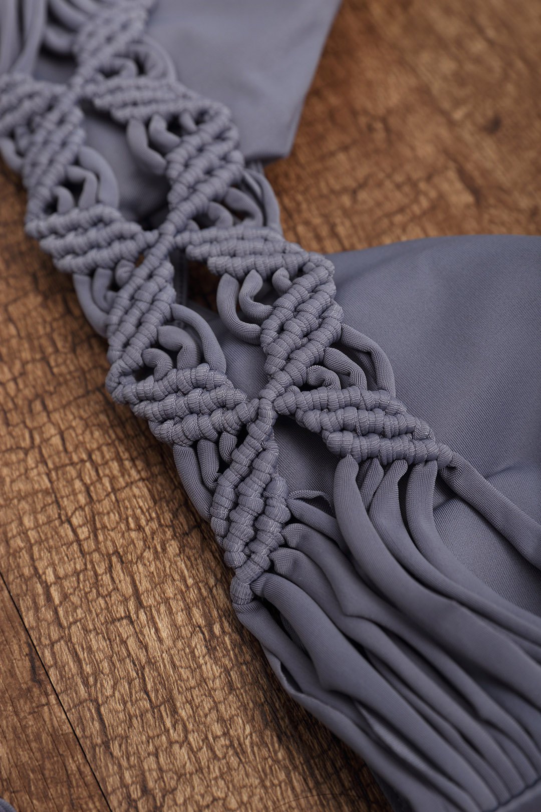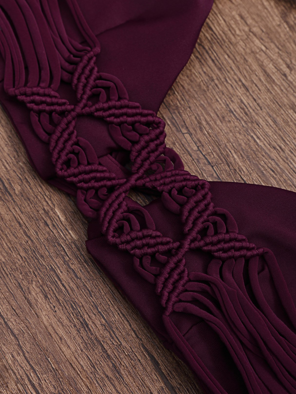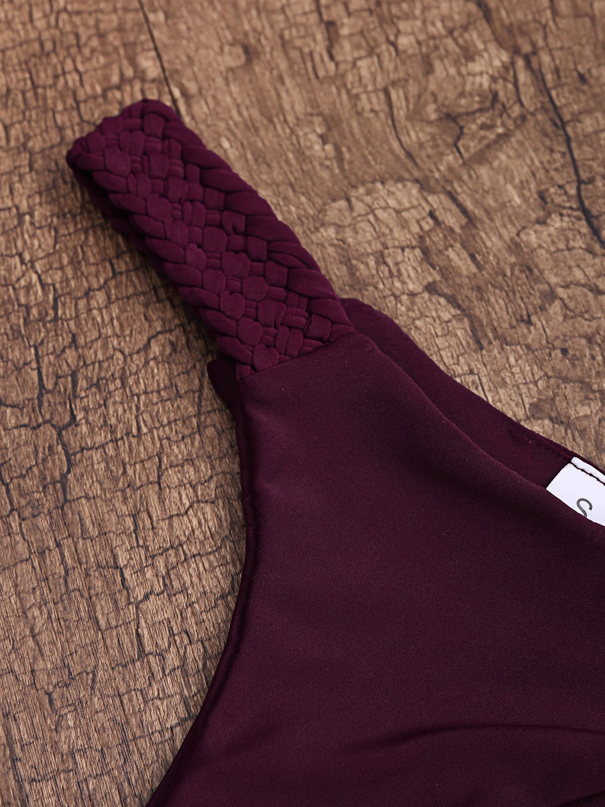 Halter Deep V Neck Sleeveless Plain Lace-Up Two Piece Bikinis