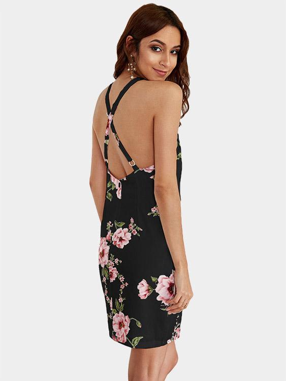 Material:PolyesterNeckline:HalterSeason:Spring,SummerPattern:Floral PrintStyle:Ladies Style,Party StyleDetail:Lace,Backless DesignLength:MiniFit:Regular Fit