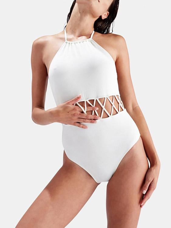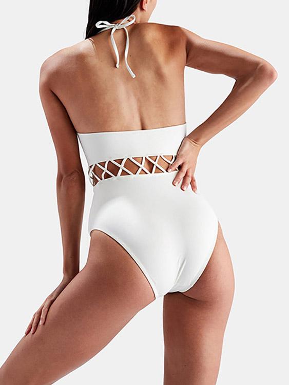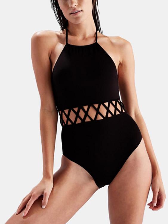Halter Hollow Tie-Up Sleeveless Bikinis