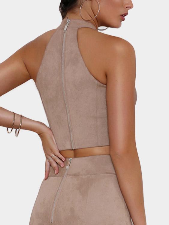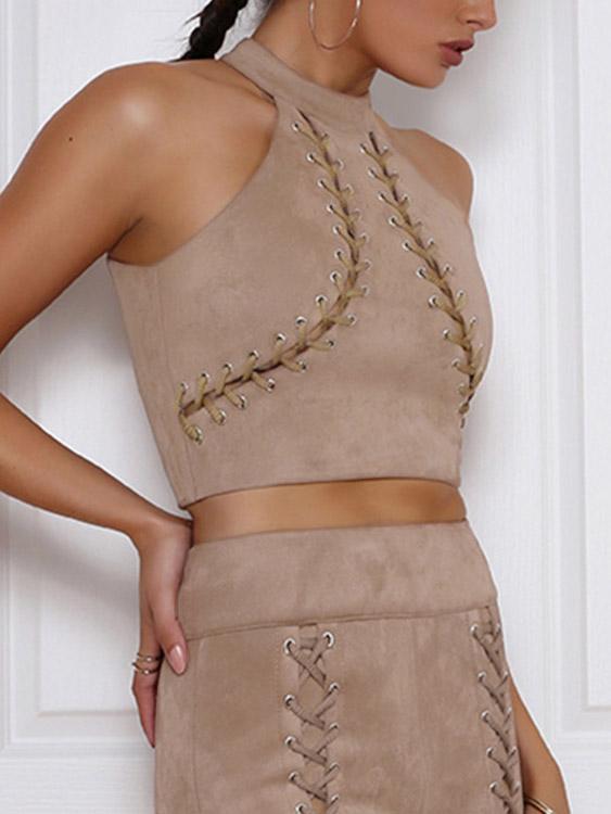 Material:PolyesterNeckline:HalterSeason:Spring,Summer,AutumnSleeves:SleevelessStyle:Sexy StyleDetail:Button Keyhole Back Design,Lace-Up DesignFit:Regular Fit