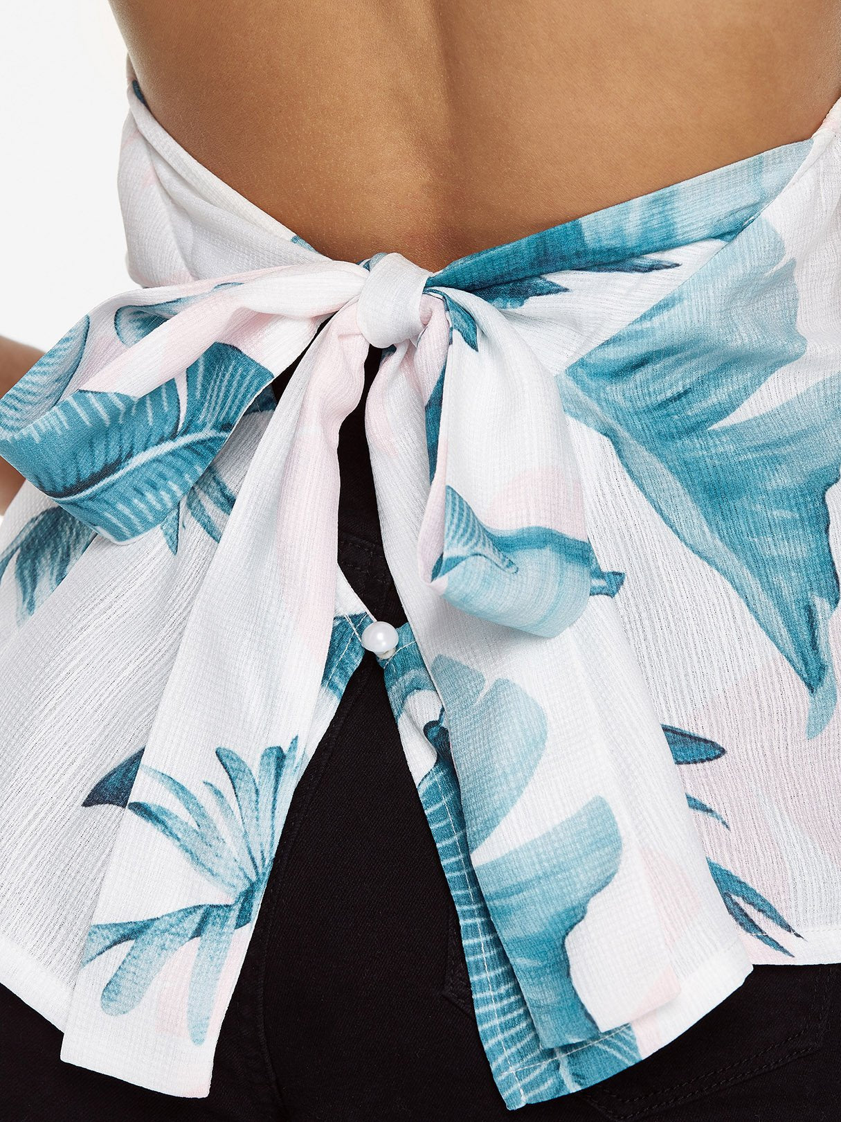 Halter Printed Backless Lace-Up Sleeveless White Camis