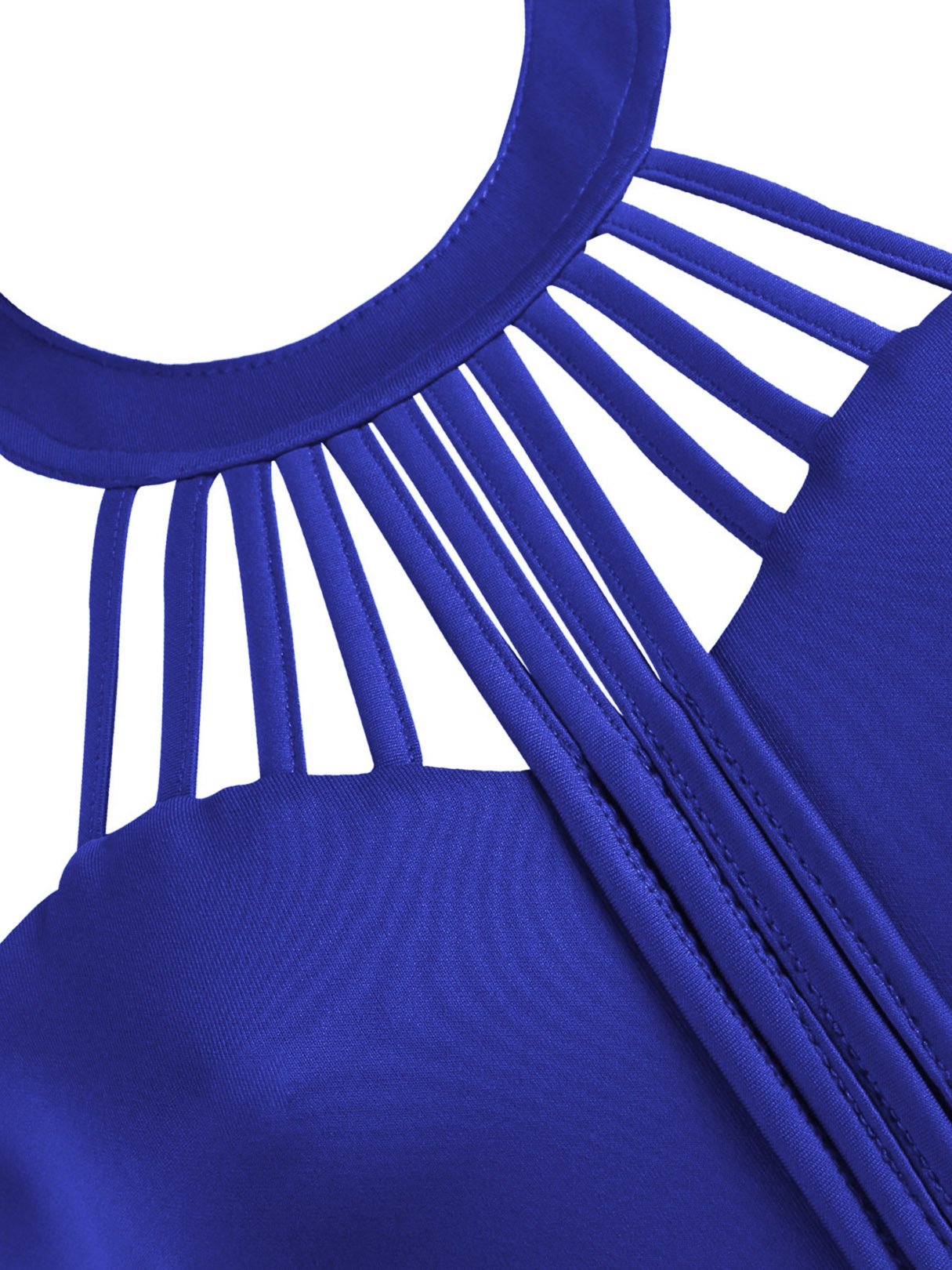 Halter Sleeveless Cut Out Slit Hem High Waist Midi Dress