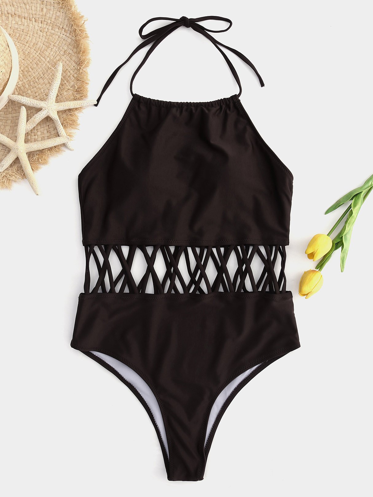 Halter Sleeveless Hollow Tie-Up Bikinis