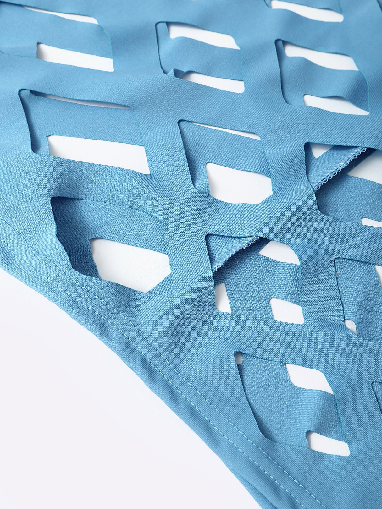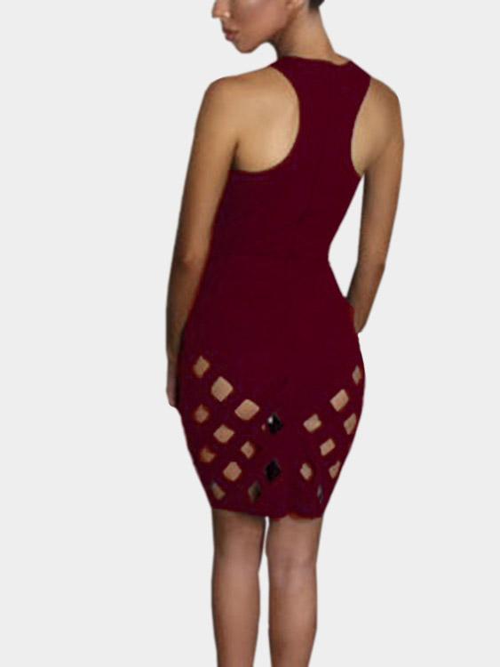 Halter Sleeveless Plain Zip Back Hollow Cut Out Mini Dress