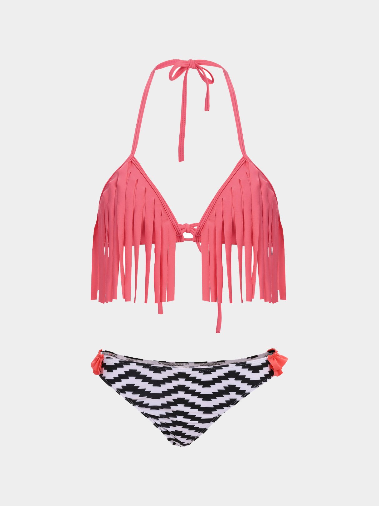 Material:Cotton,PolyesterNeckline:HalterStyle:Sexy StyleDetail:Tassel DetailsType:Bikini