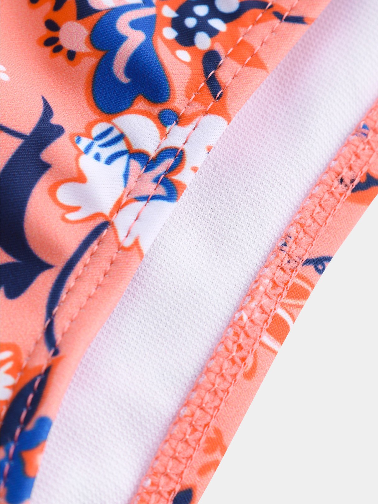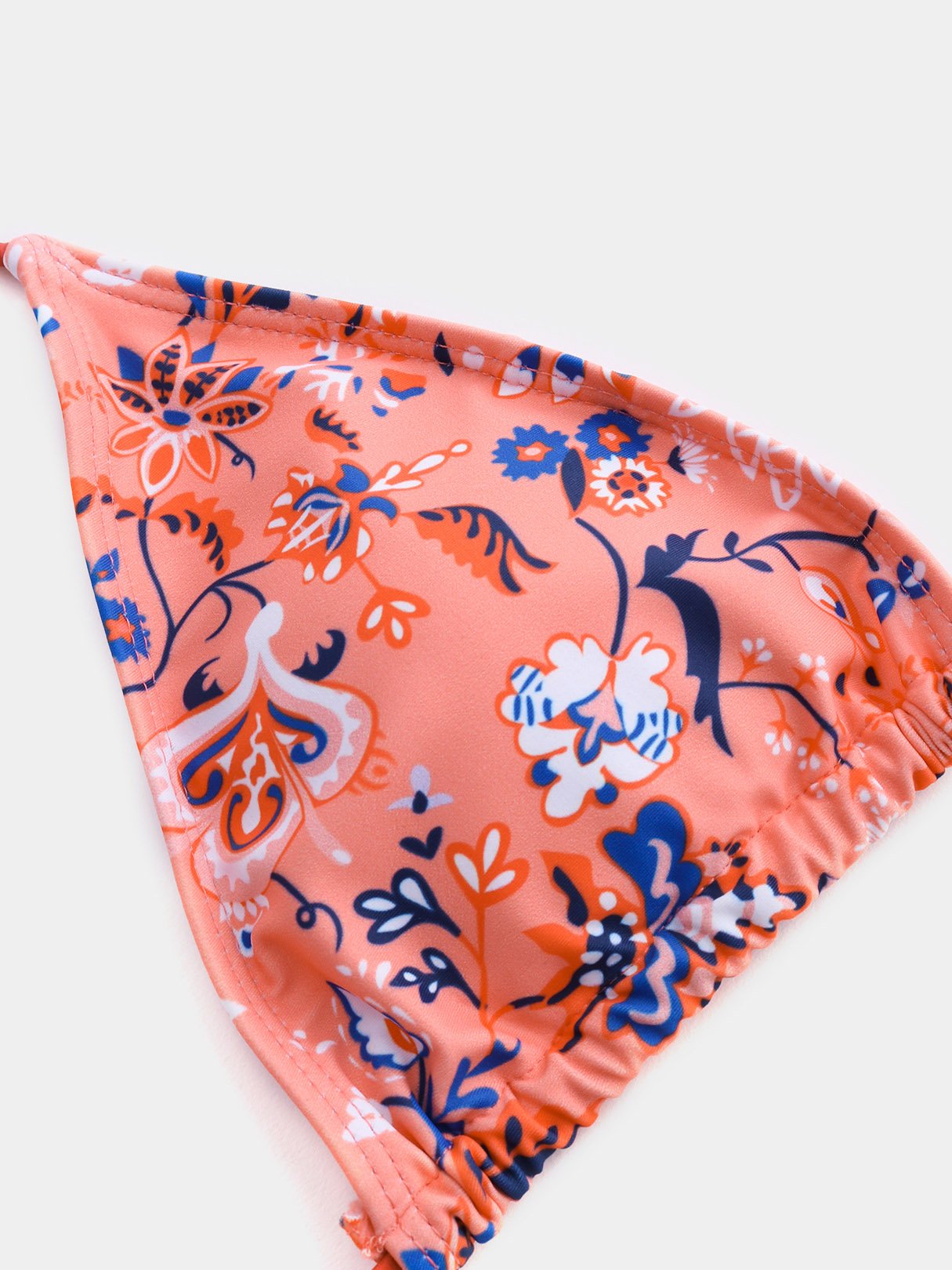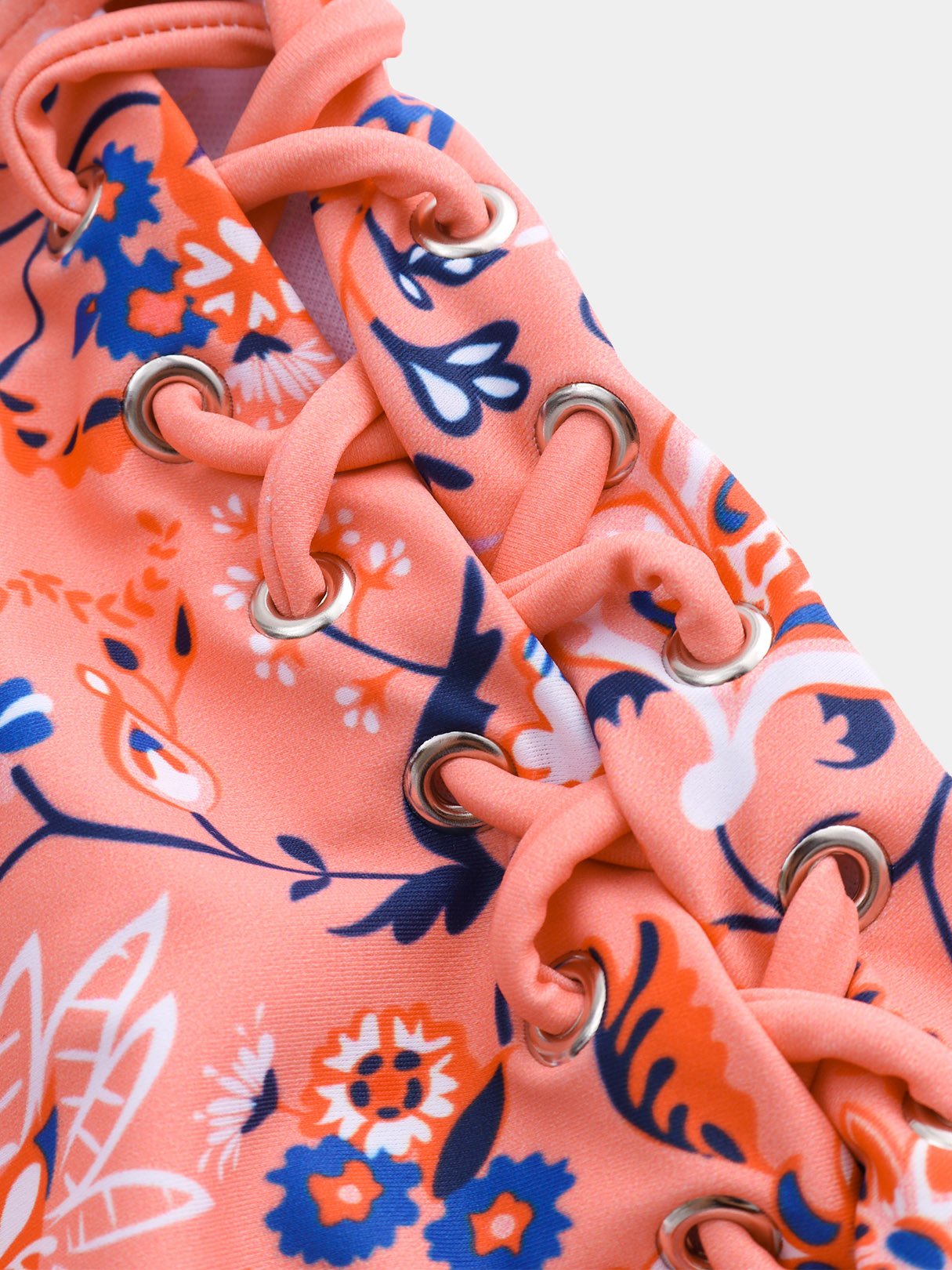 Halter V-Neck Floral Print Criss-Cross Tie-Up Sleeveless High-Waisted Pink Bikini Set