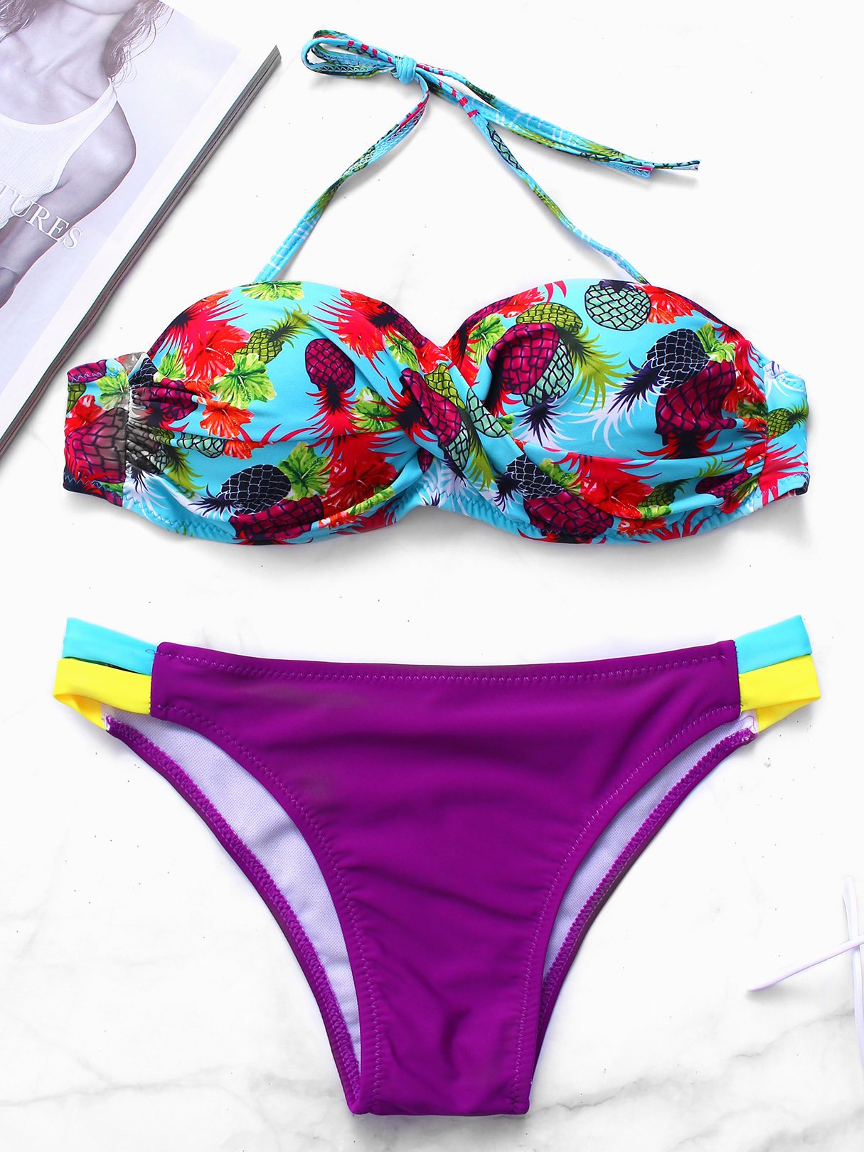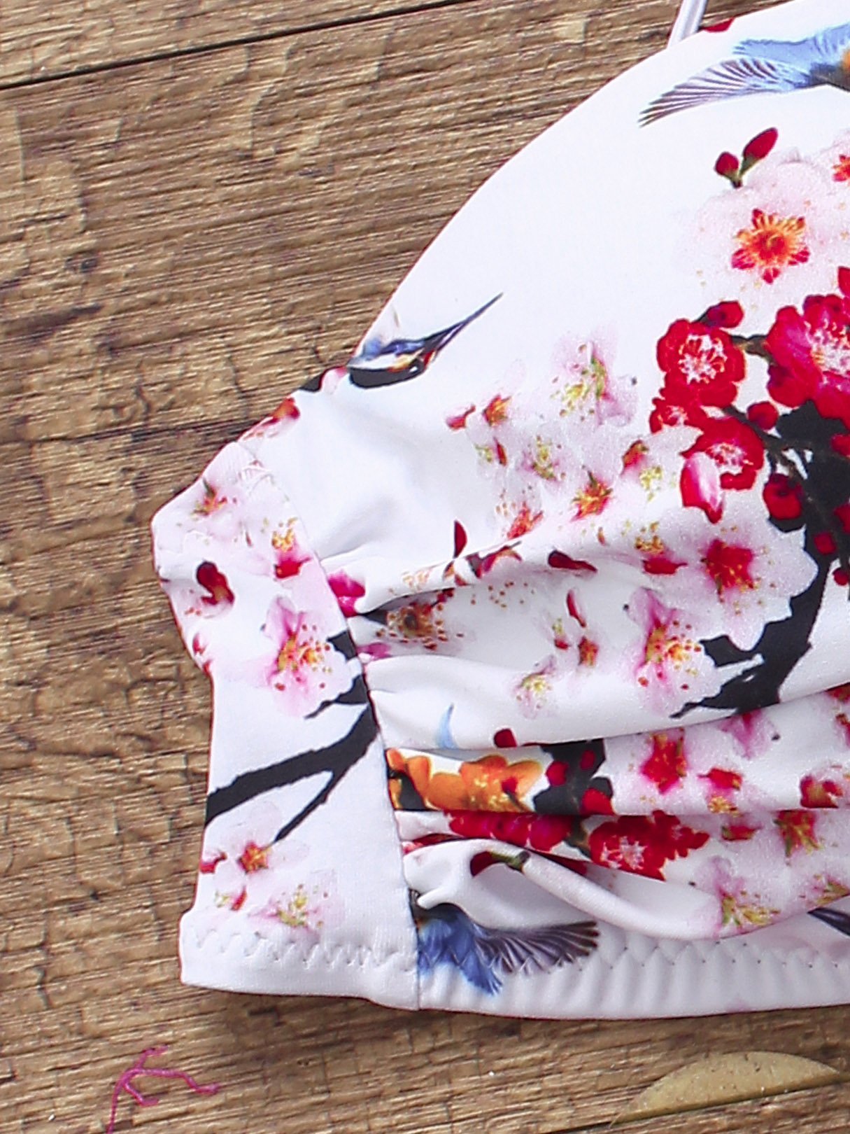 Halter V-Neck Sleeveless Floral Print Bikinis