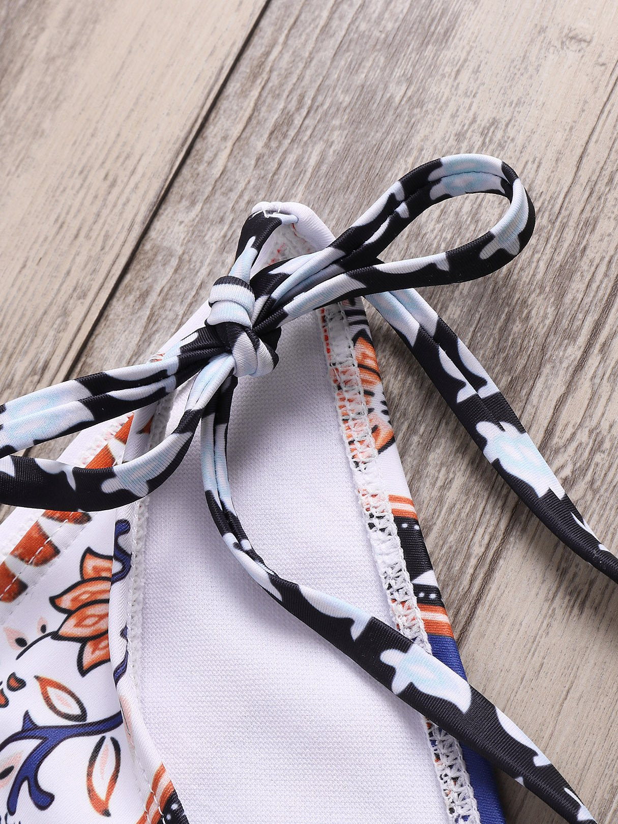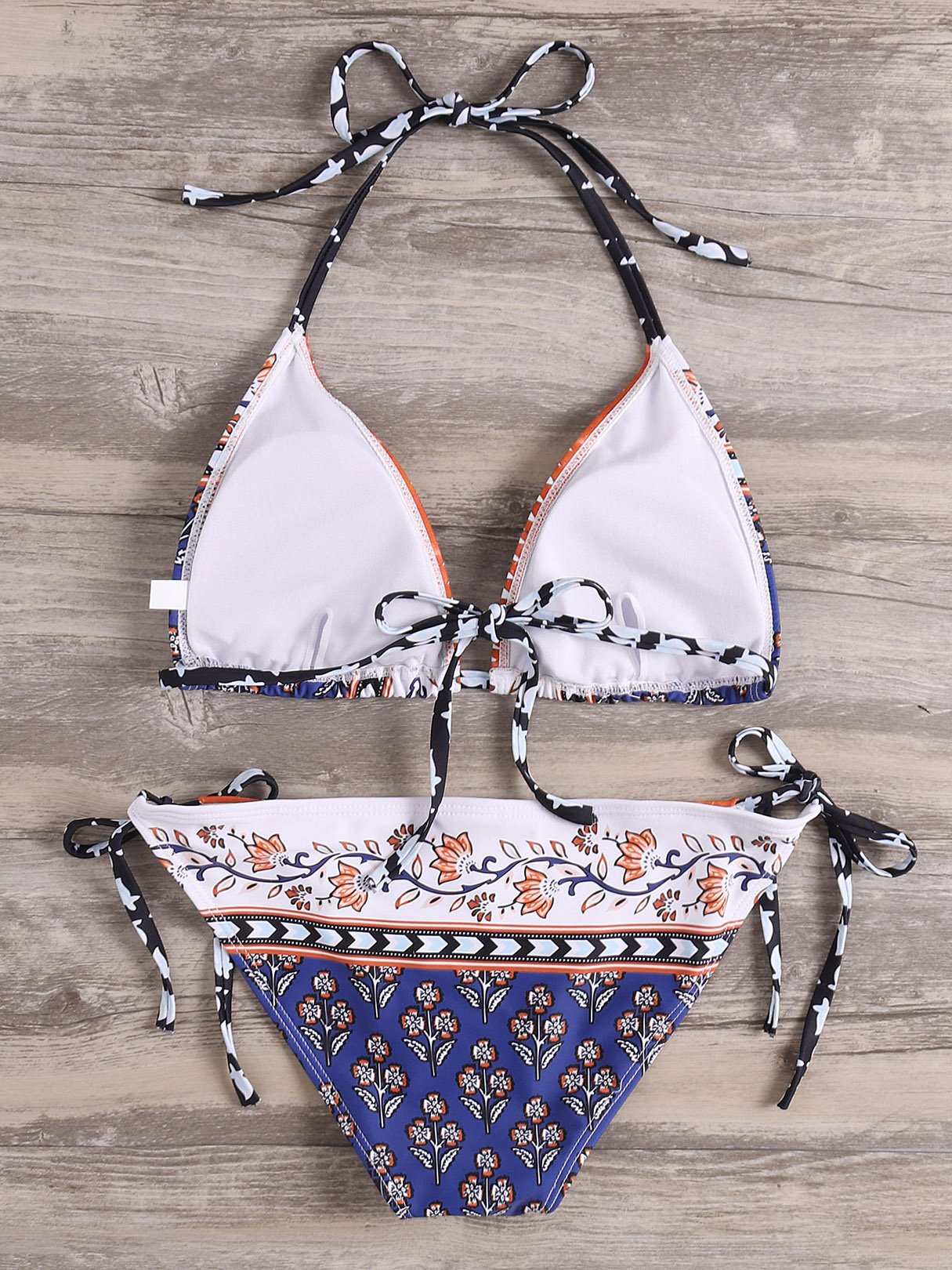 Halter V-Neck Sleeveless Floral Print Tie-Up Two Piece Bikini
