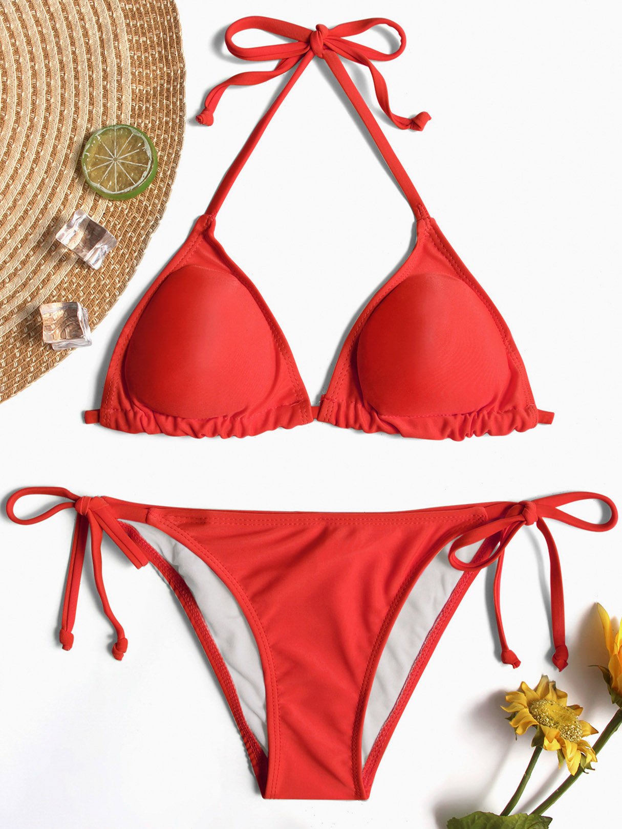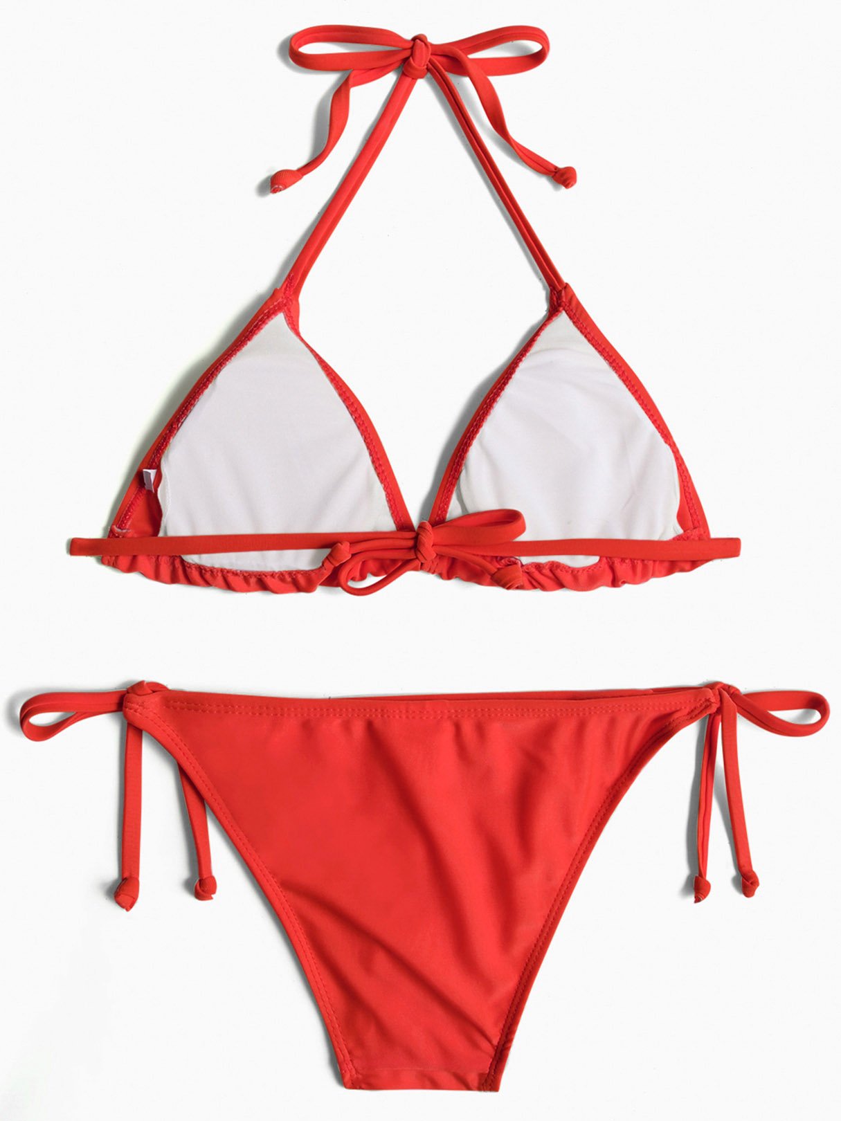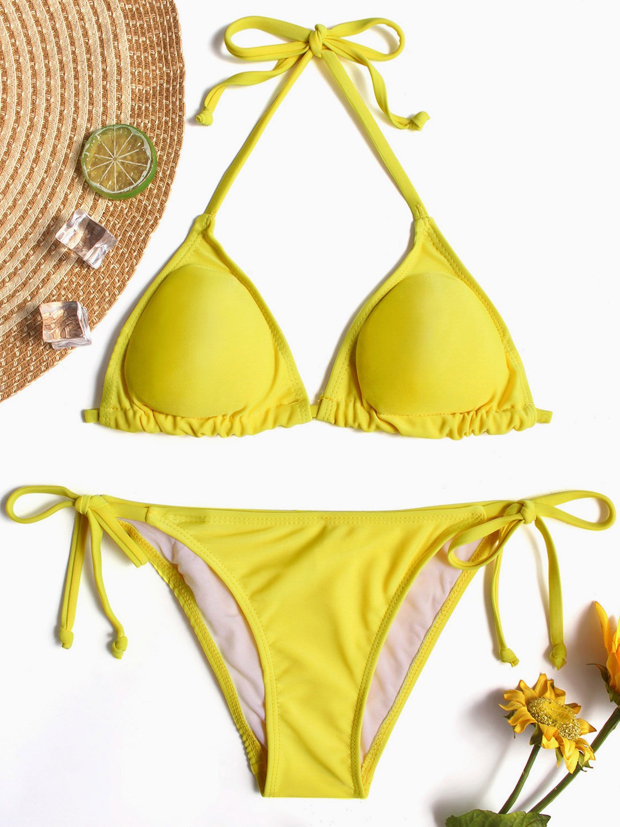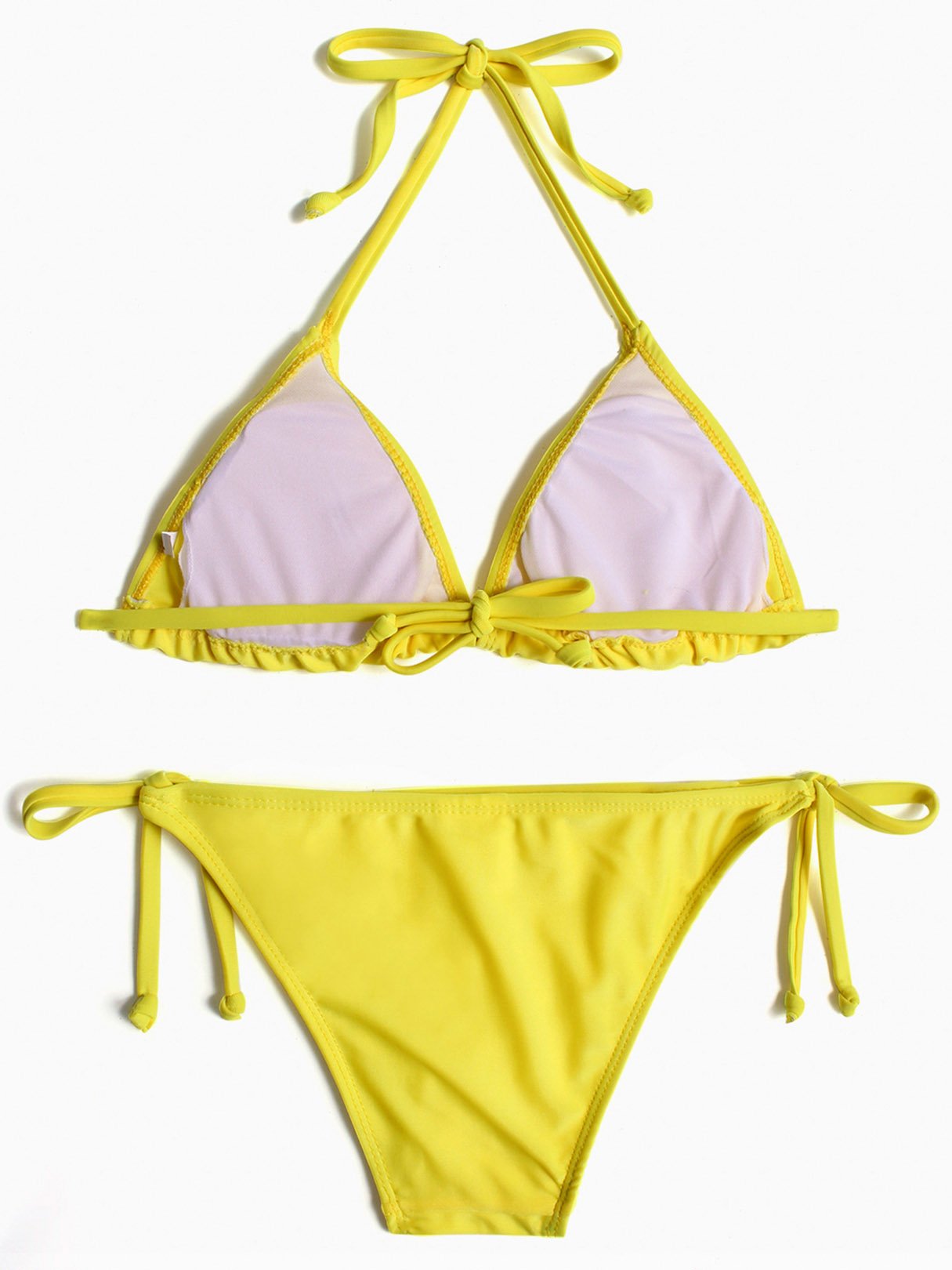 Halter V-Neck Sleeveless Plain Tie-Up Bikinis