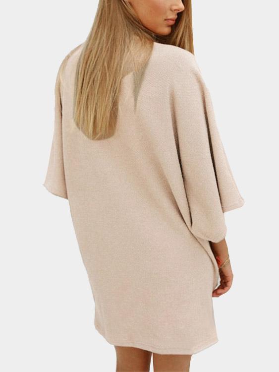 High Neck Half Sleeve Plain Crossed Front Curved Hem Mini Dresses