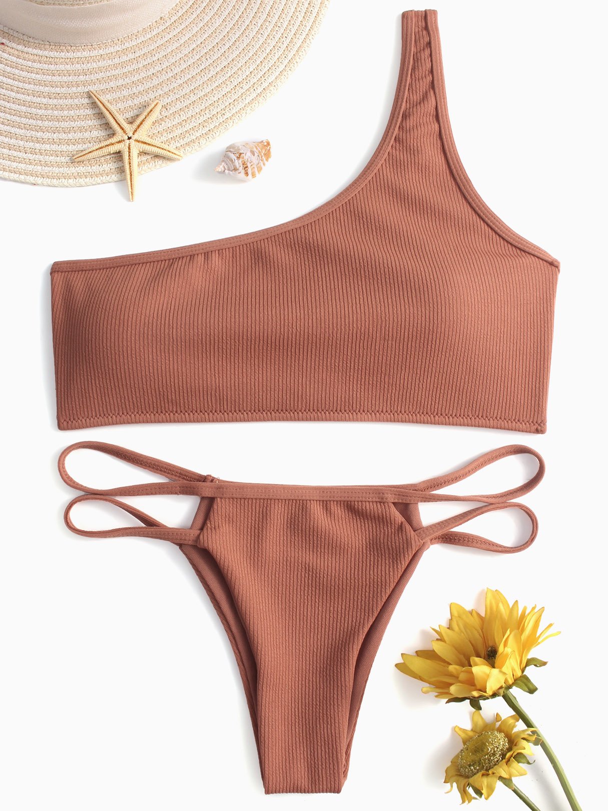 Khaki One Shoulder Sleeveless Two Piece Bikini