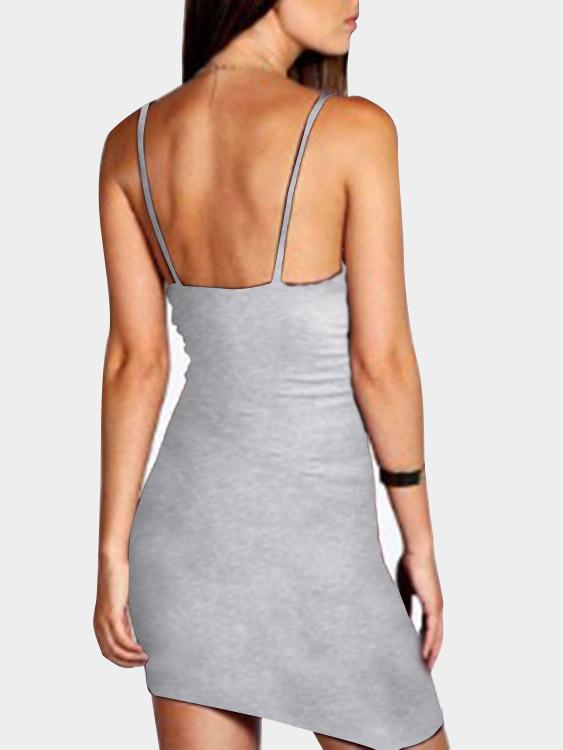 Light Grey Deep V Neck Sleeveless Plain Backless Spaghetti Strap Mini Dress - Light Grey / S is backordered and will ship as soon as it is back in stock.
