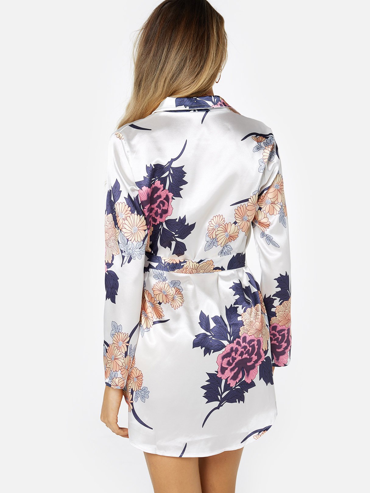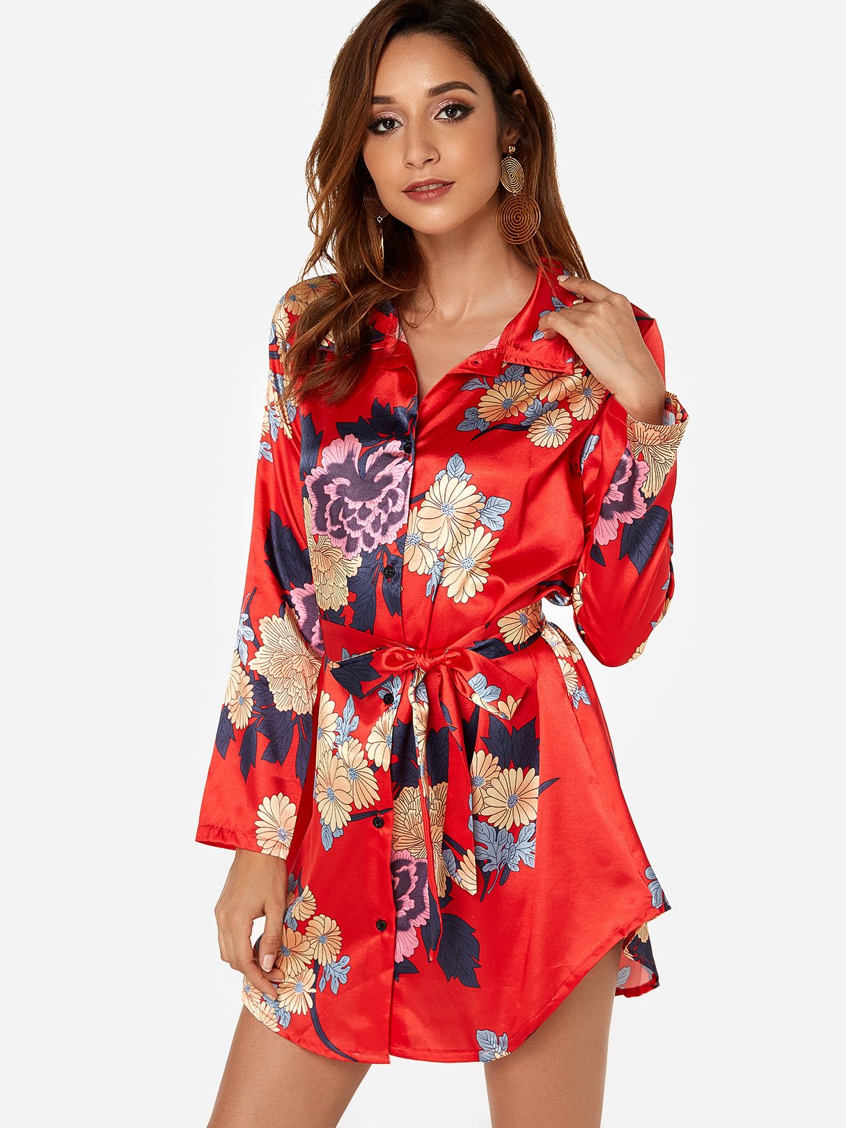 Material:Cotton,PolyesterSeason:Spring,SummerSleeves:Long SleevesPattern:Floral PrintStyle:Casual Style,Sexy StyleDetail:Belt Design,Self-Tie Design,Button DesignWaist Design:High-WaistedHem Design:Curved HemLength:MiniFit:Regular Fit