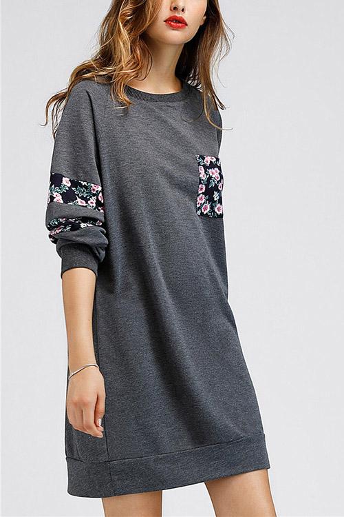 Long Sleeve Floral Print Fashion Fashion Mini Dress