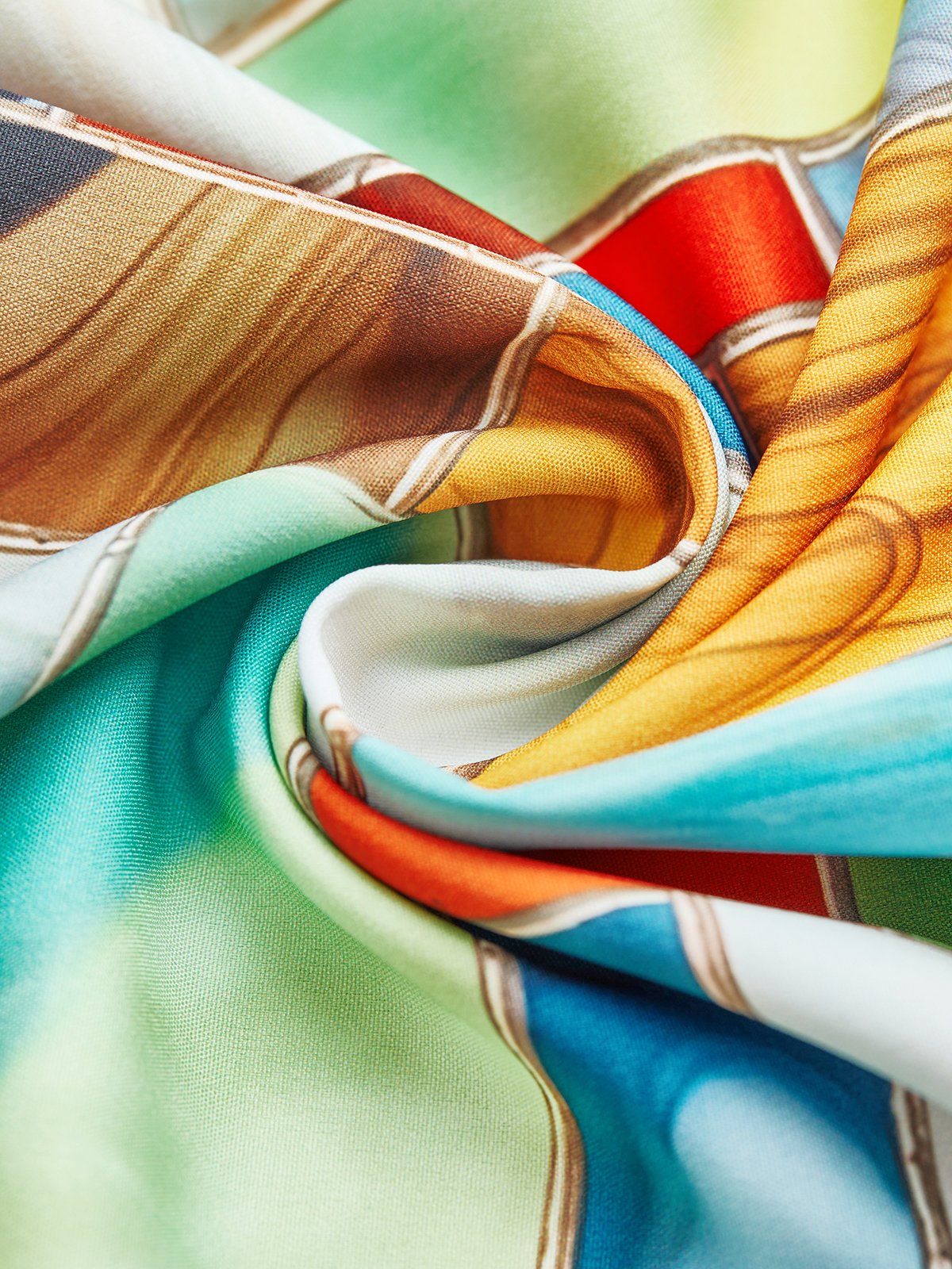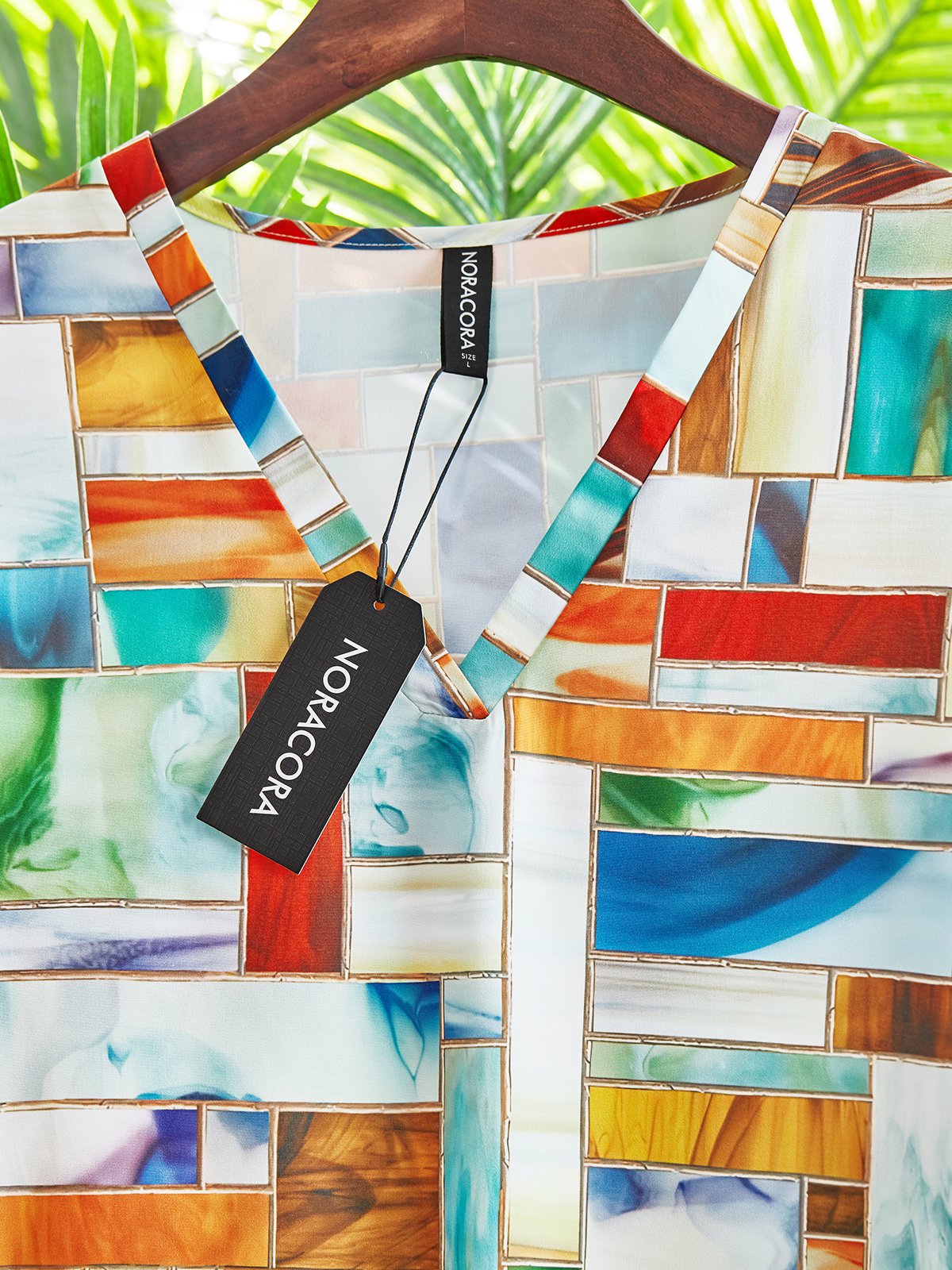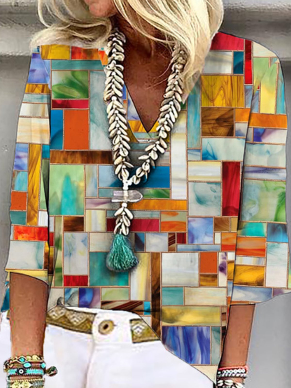Loose 3/4 Sleeve V Neck Geometric Fashion Regular Blouses - Multicolor / S is backordered and will ship as soon as it is back in stock.