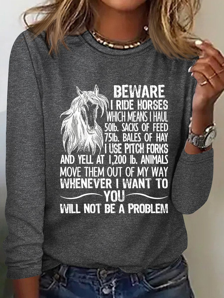 Loose Crew Neck Long Sleeve Animal Fashion Regular Blouses - Blue / S is backordered and will ship as soon as it is back in stock.