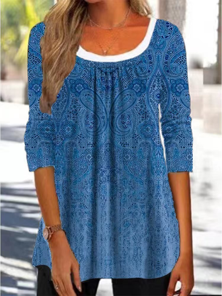 Loose Crew Neck Long Sleeve Ethnic Fashion Regular Blouses