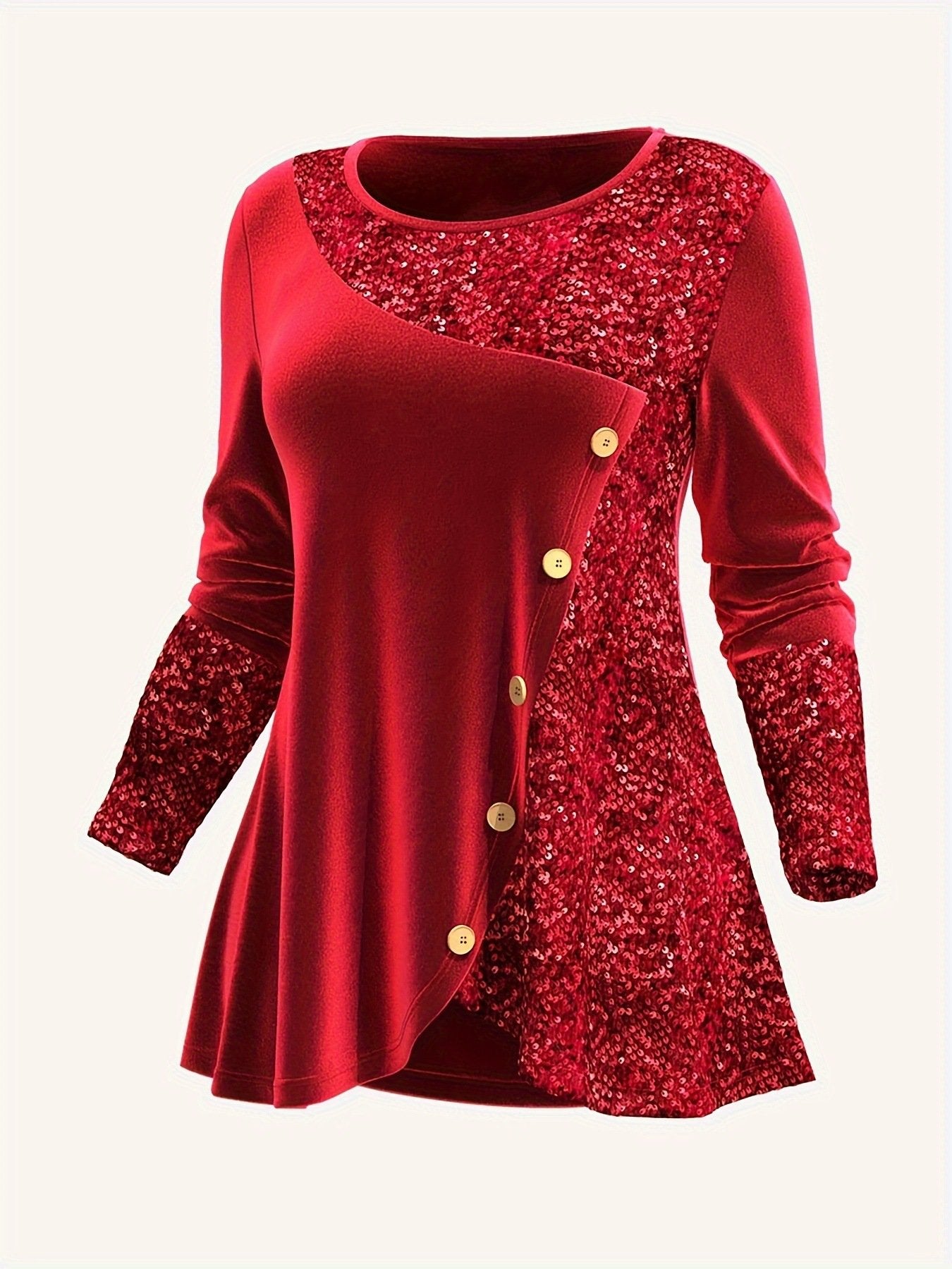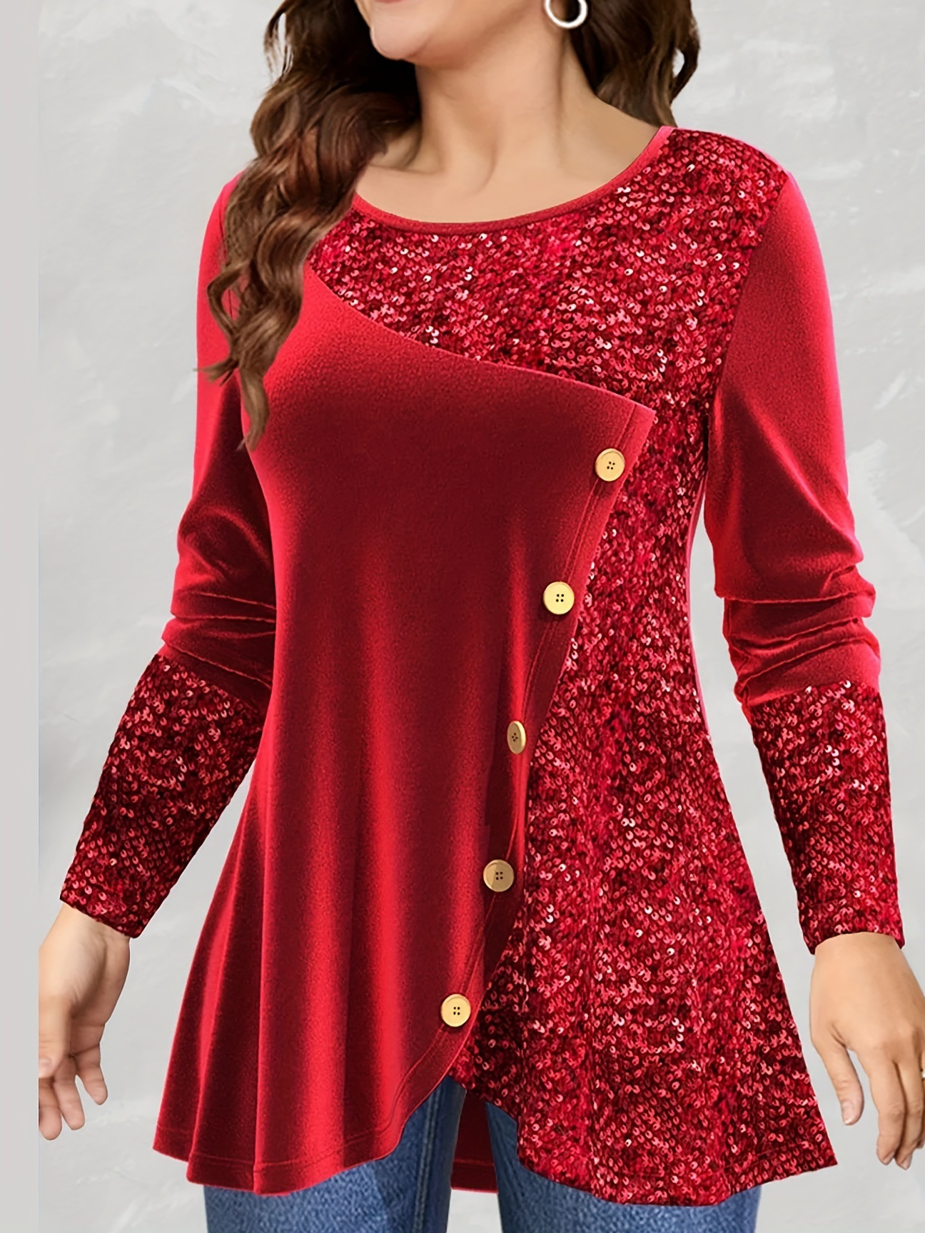Loose Crew Neck Long Sleeve Plain Fashion Regular Blouses