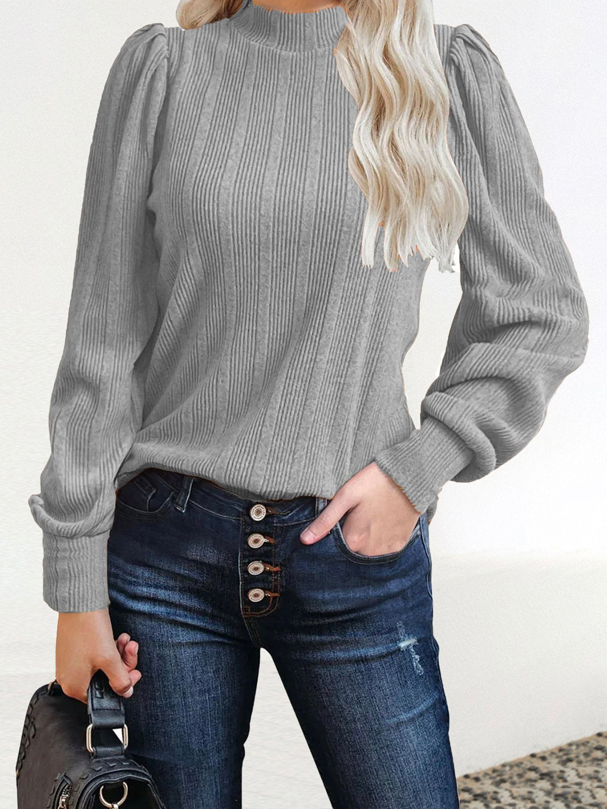 Loose Long Sleeve Mock Neck Plain Fashion Regular Blouse - Orange / S is backordered and will ship as soon as it is back in stock.