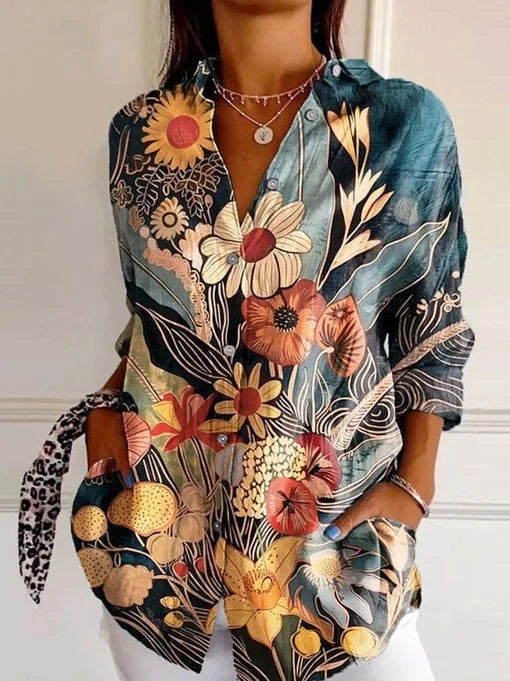 Loose Long Sleeve Shirt Collar Abstract Floral Fashion Regular Shirt - Black / XS is backordered and will ship as soon as it is back in stock.
