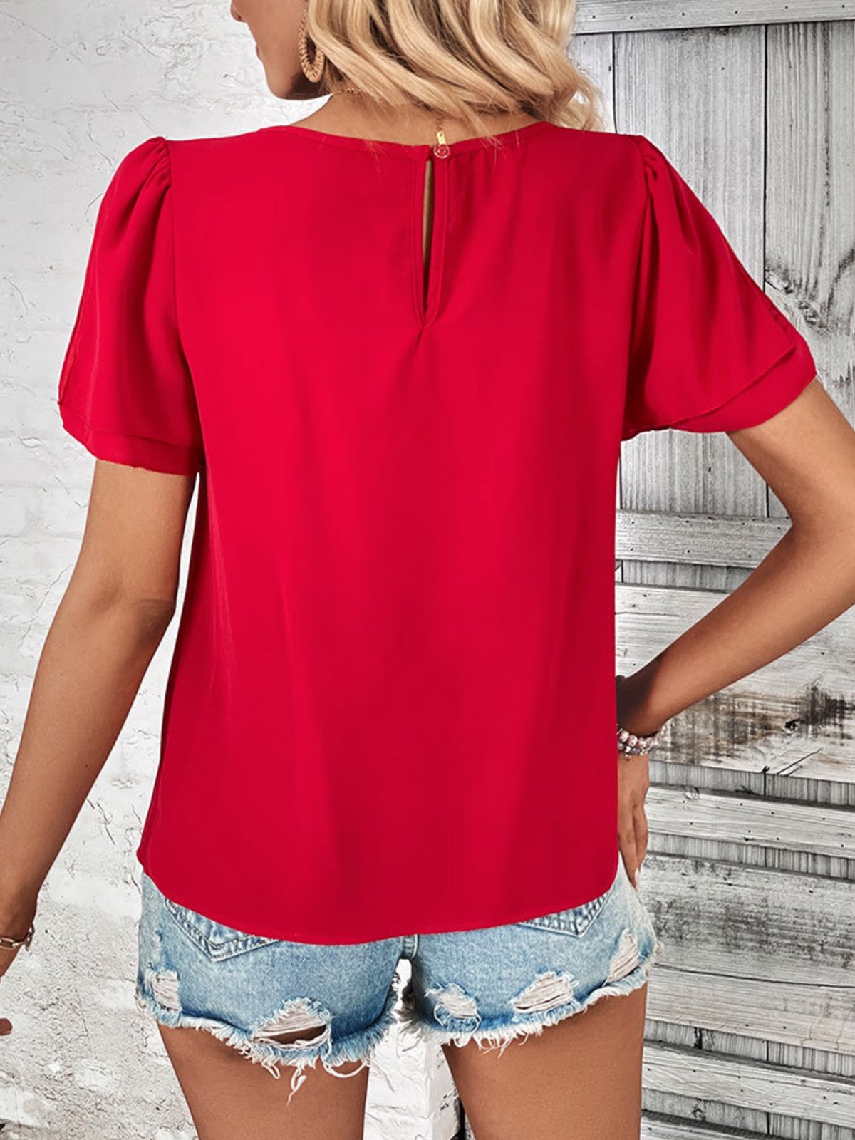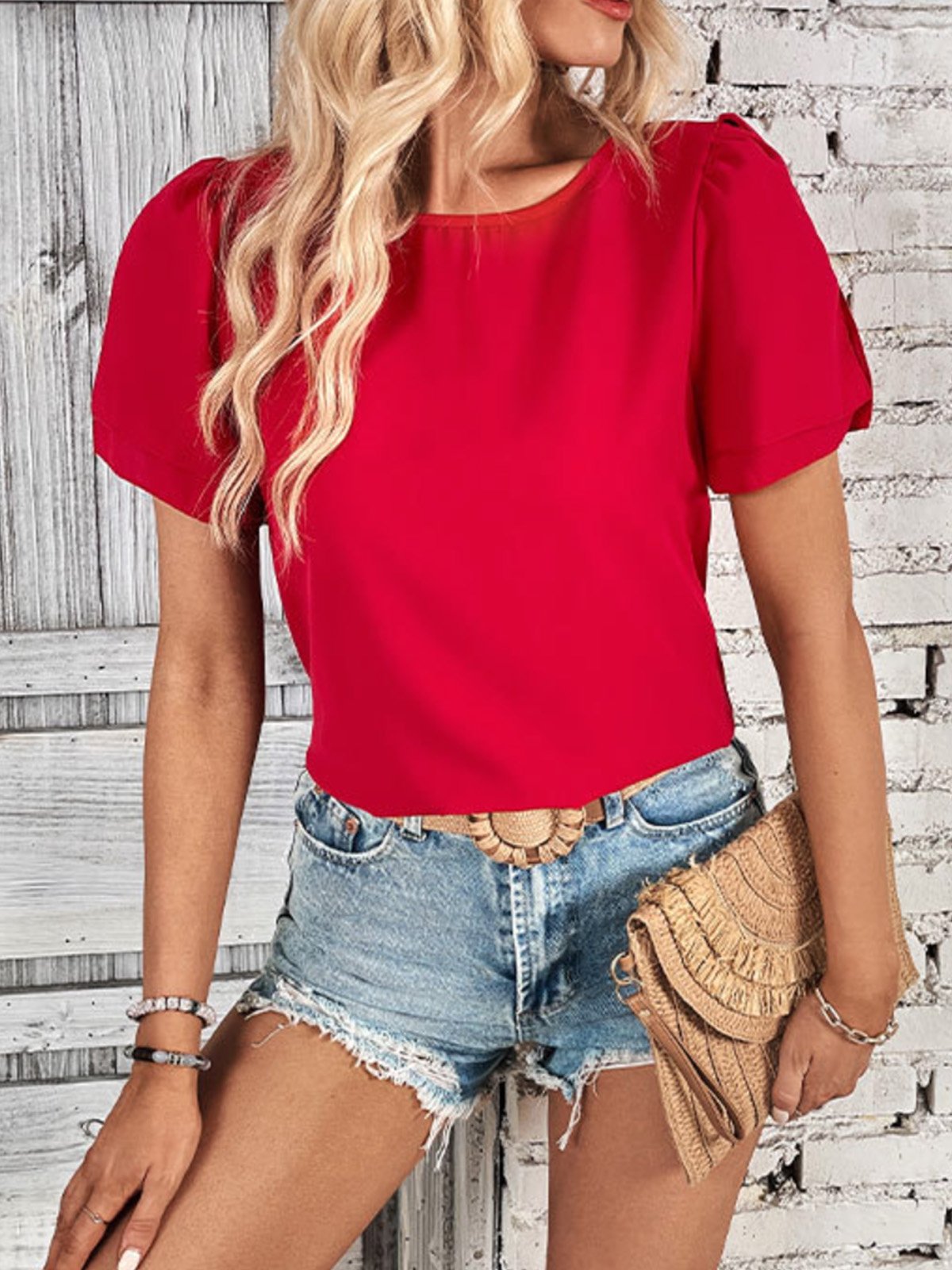 Loose Short Sleeve Crew Neck Plain Fashion Regular Blouse