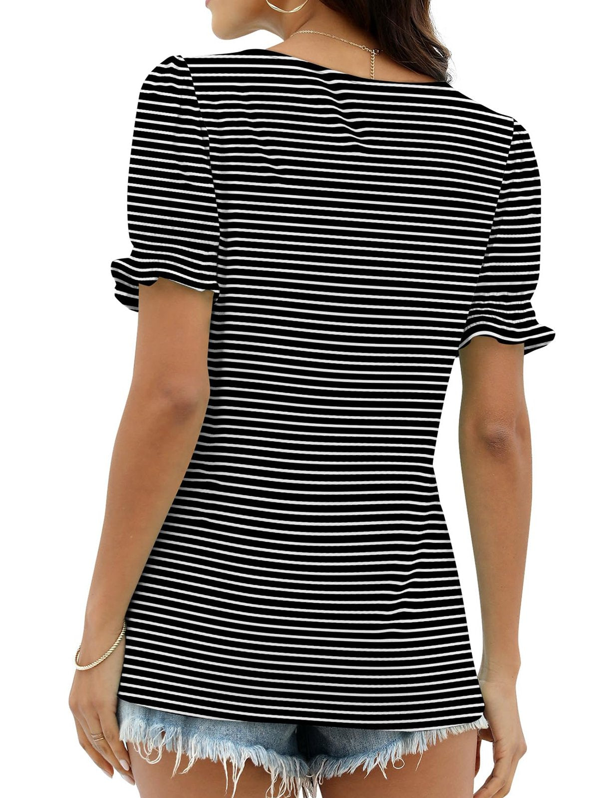 Loose Short Sleeve Square Neck Striped Fashion Regular Blouse