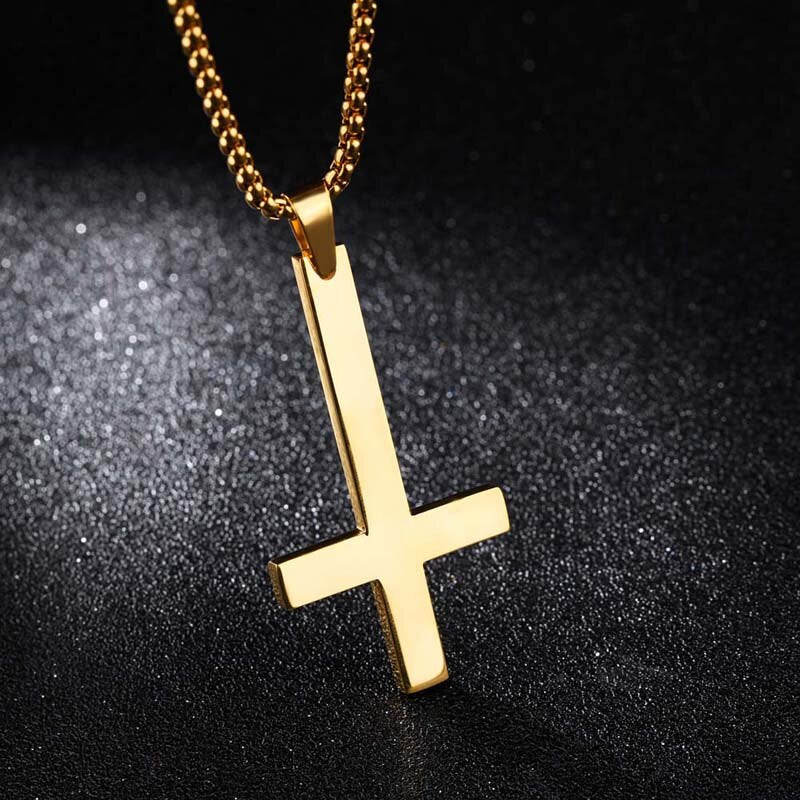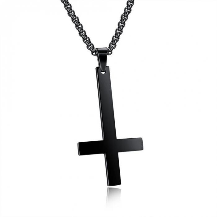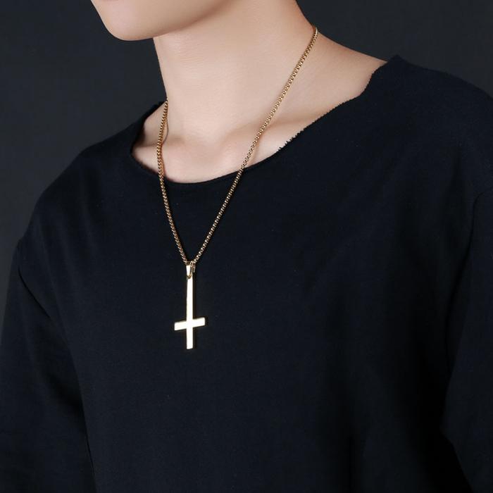 Men Inverted Cross Pendant Necklace Stainless Steel Chain Link Necklaces Jewelry