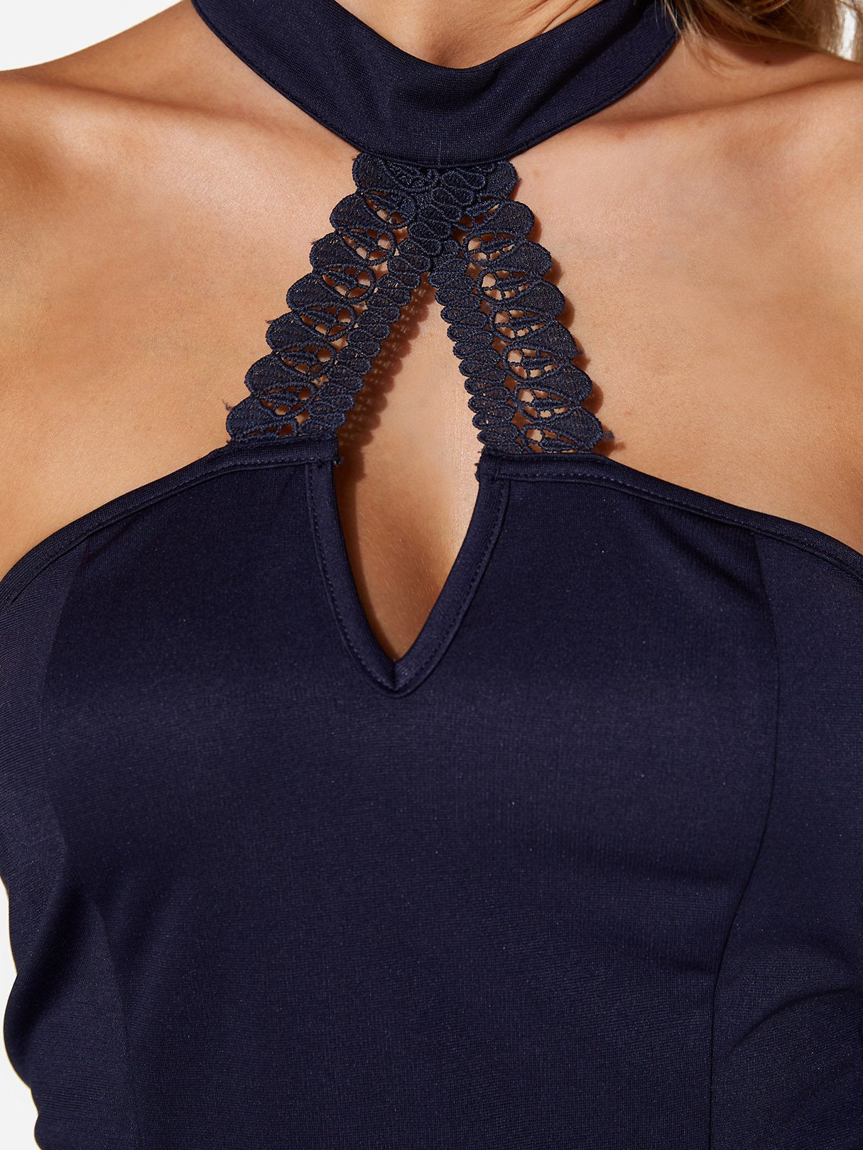 Navy Halter Long Sleeve Cut Out Bodycon Mini Dress