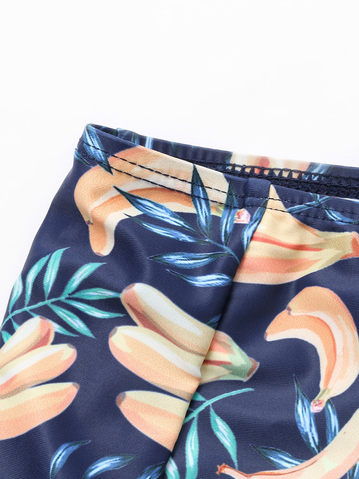 Navy Halter Sleeveless Printed Backless Self-Tie Two Piece Bikinis