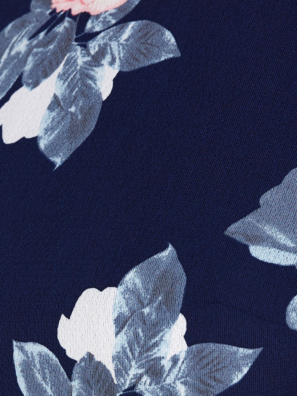 Navy Round Neck Long Sleeve Floral Print Backless Lace-Up Cut Out Dresses