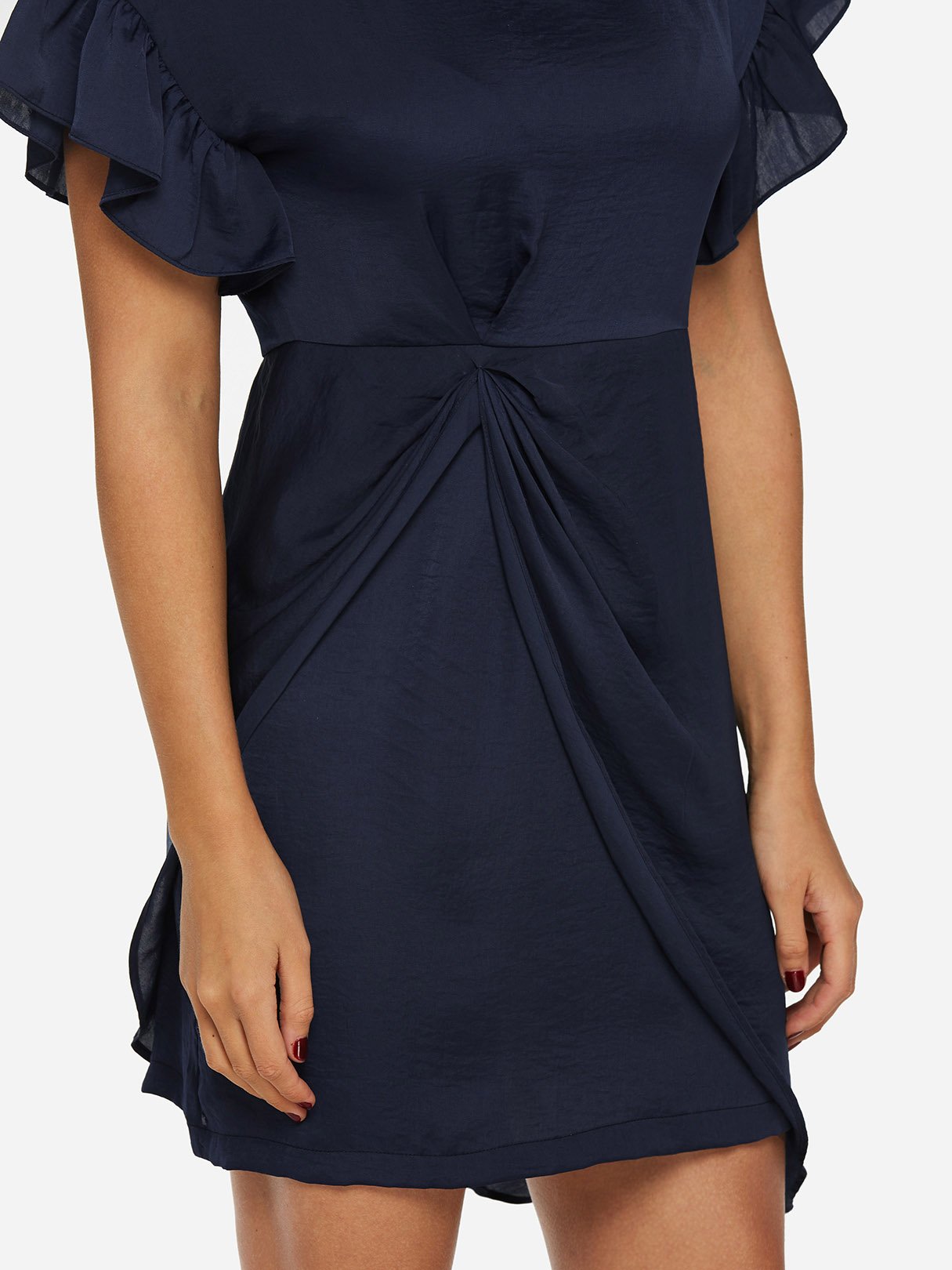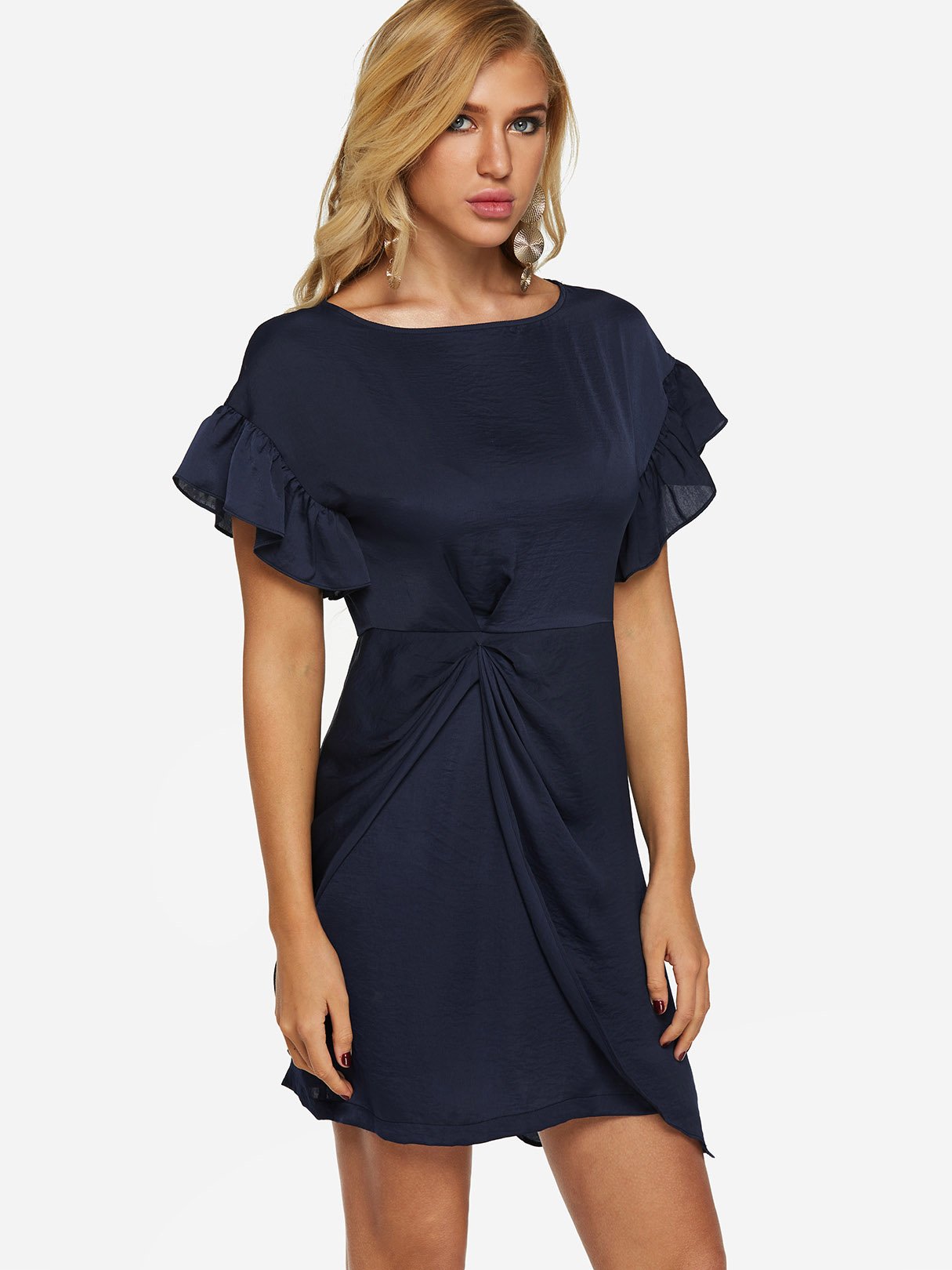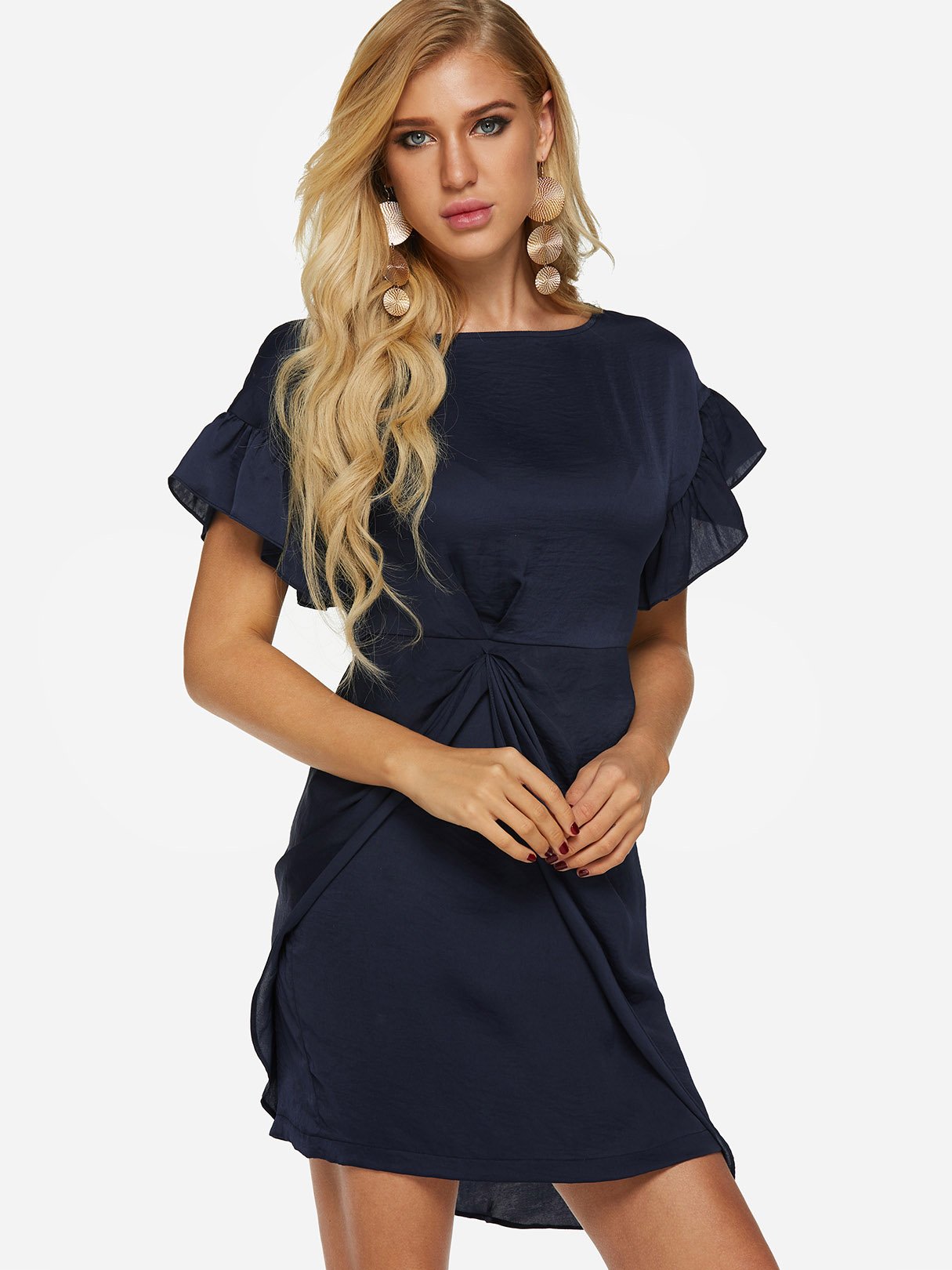 Navy Round Neck Short Sleeve Pleated Irregular Hem Sexy Dress