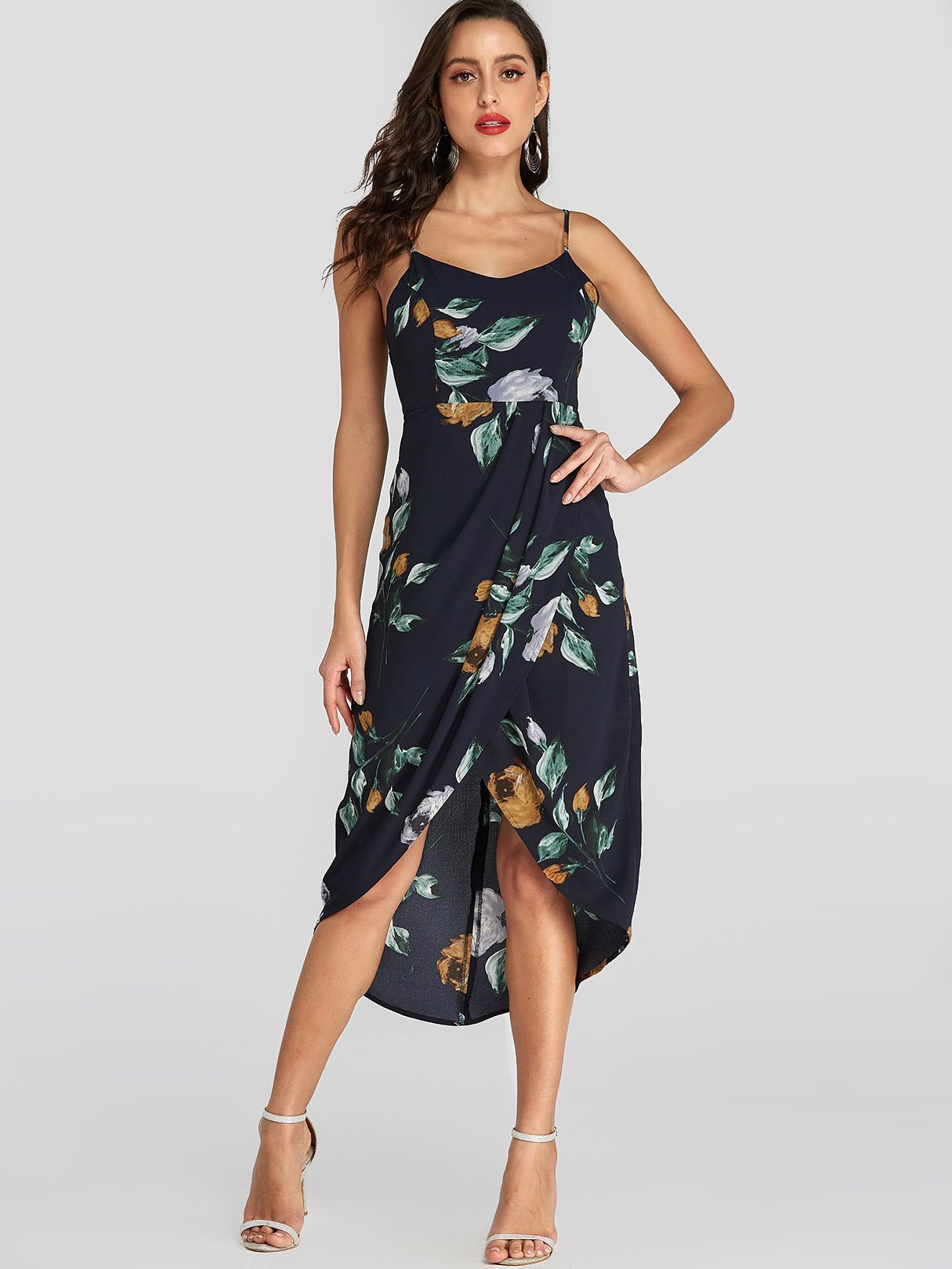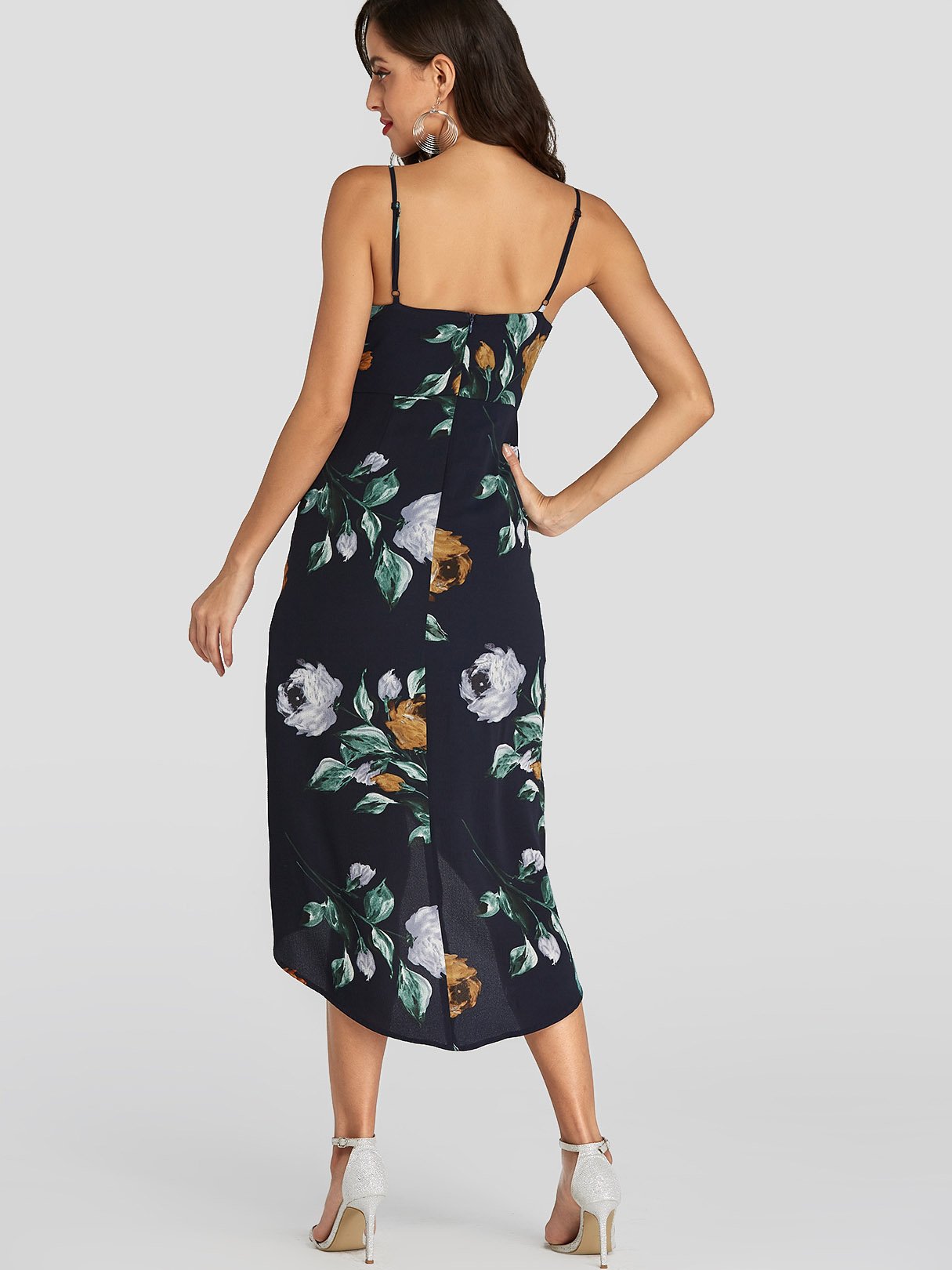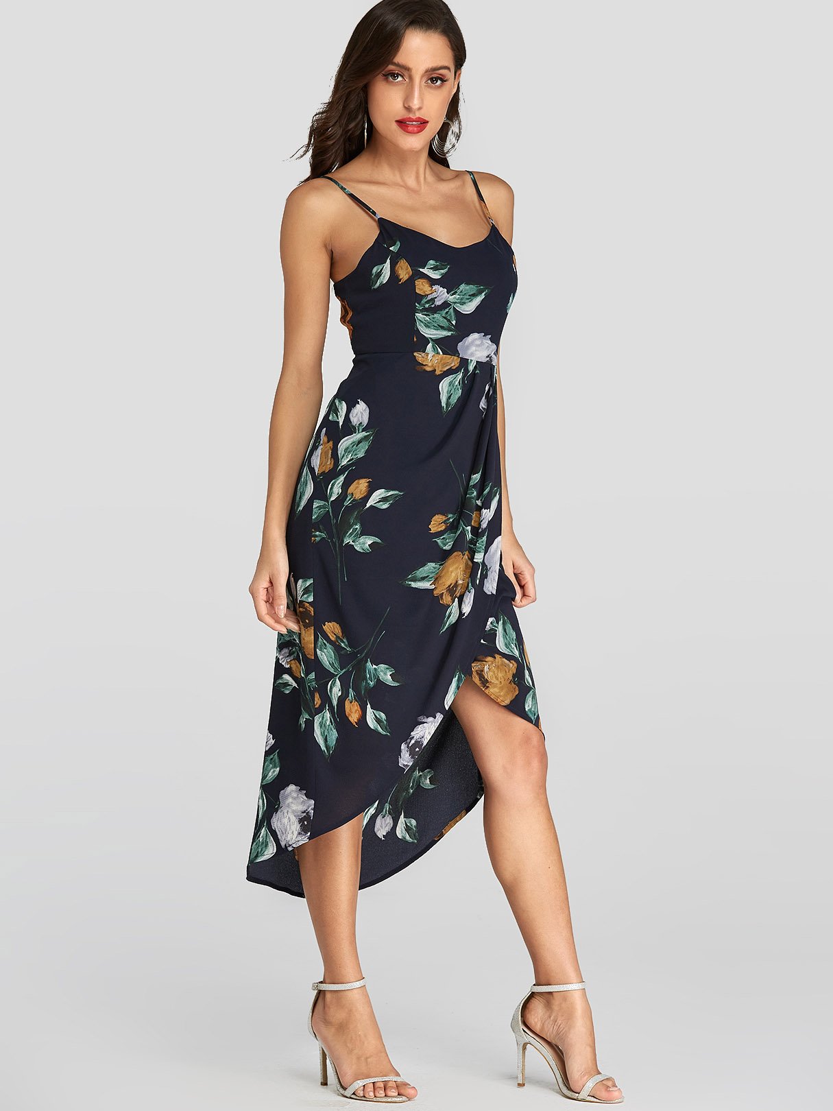Material:PolyesterSeason:Spring,Summer,AutumnSleeves:SleevelessPattern:Floral PrintStyle:Party StyleDetail:Adjustable Shoulder Straps,Backless DesignWaist Design:High-WaistedHem Design:Irregular HemLength:MidiFit:Regular FitOccasion:Party,Wedding Guest