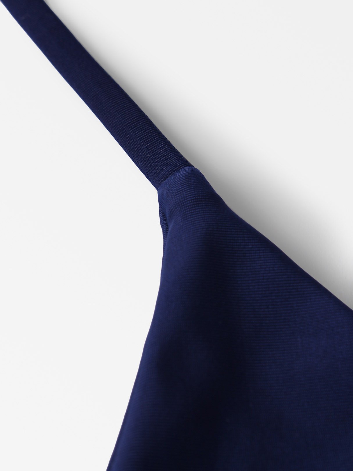 Navy V-Neck Sleeveless Printed Lace-Up Bikinis