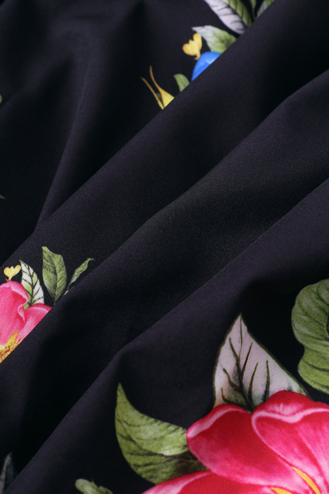 Off The Shoulder Floral Print 3/4 Sleeve Bodycon Hem Black Blouses