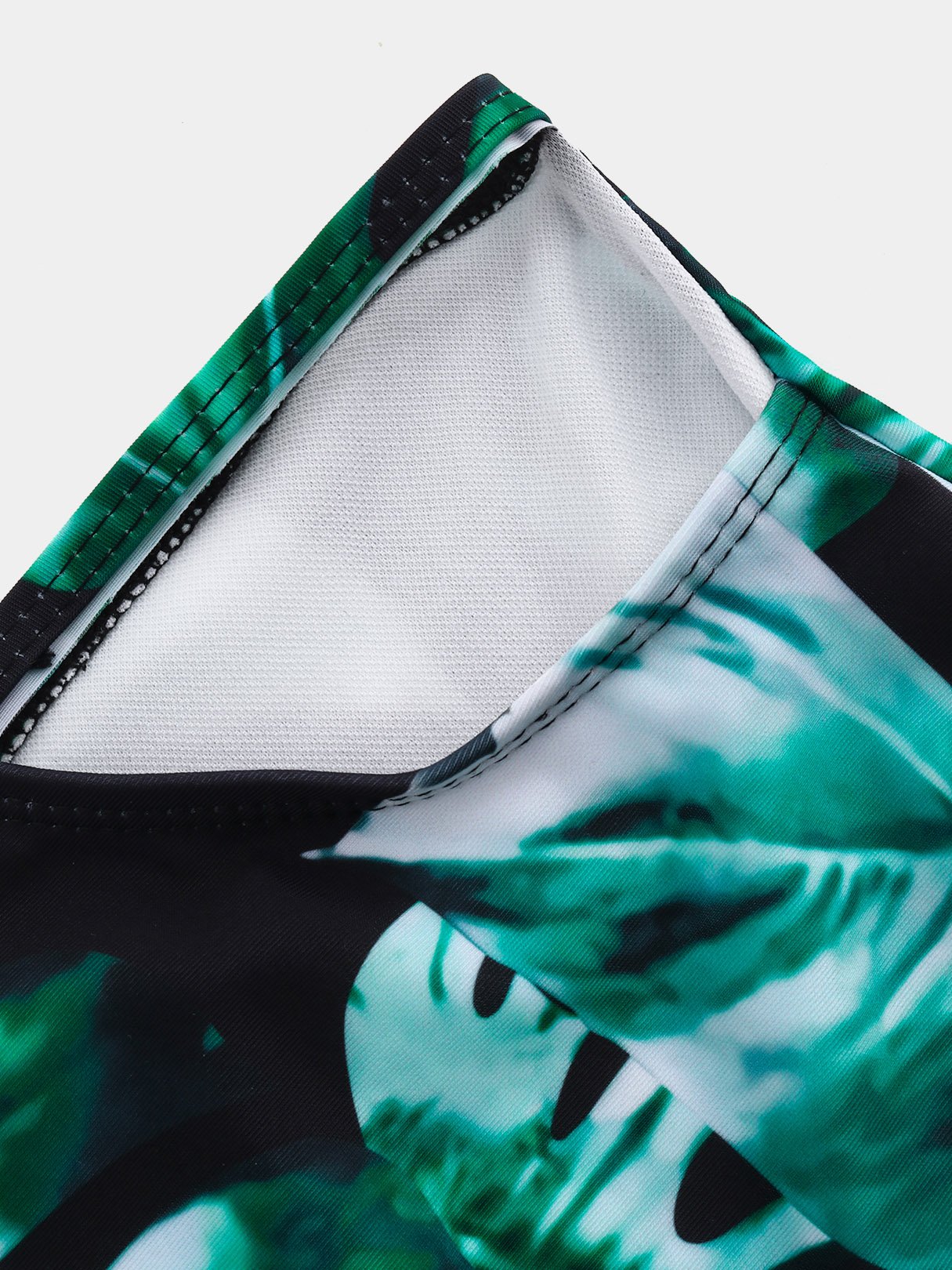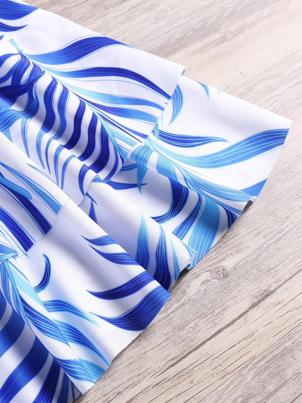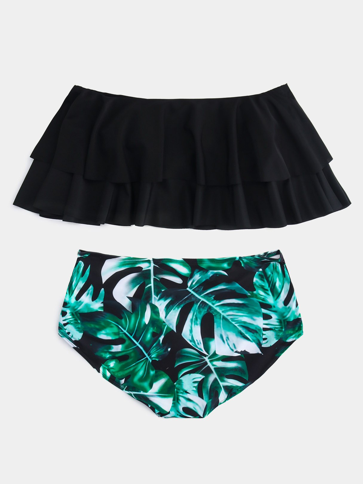 Off The Shoulder Half Sleeve Printed Tiered Backless Cut Out Bikinis