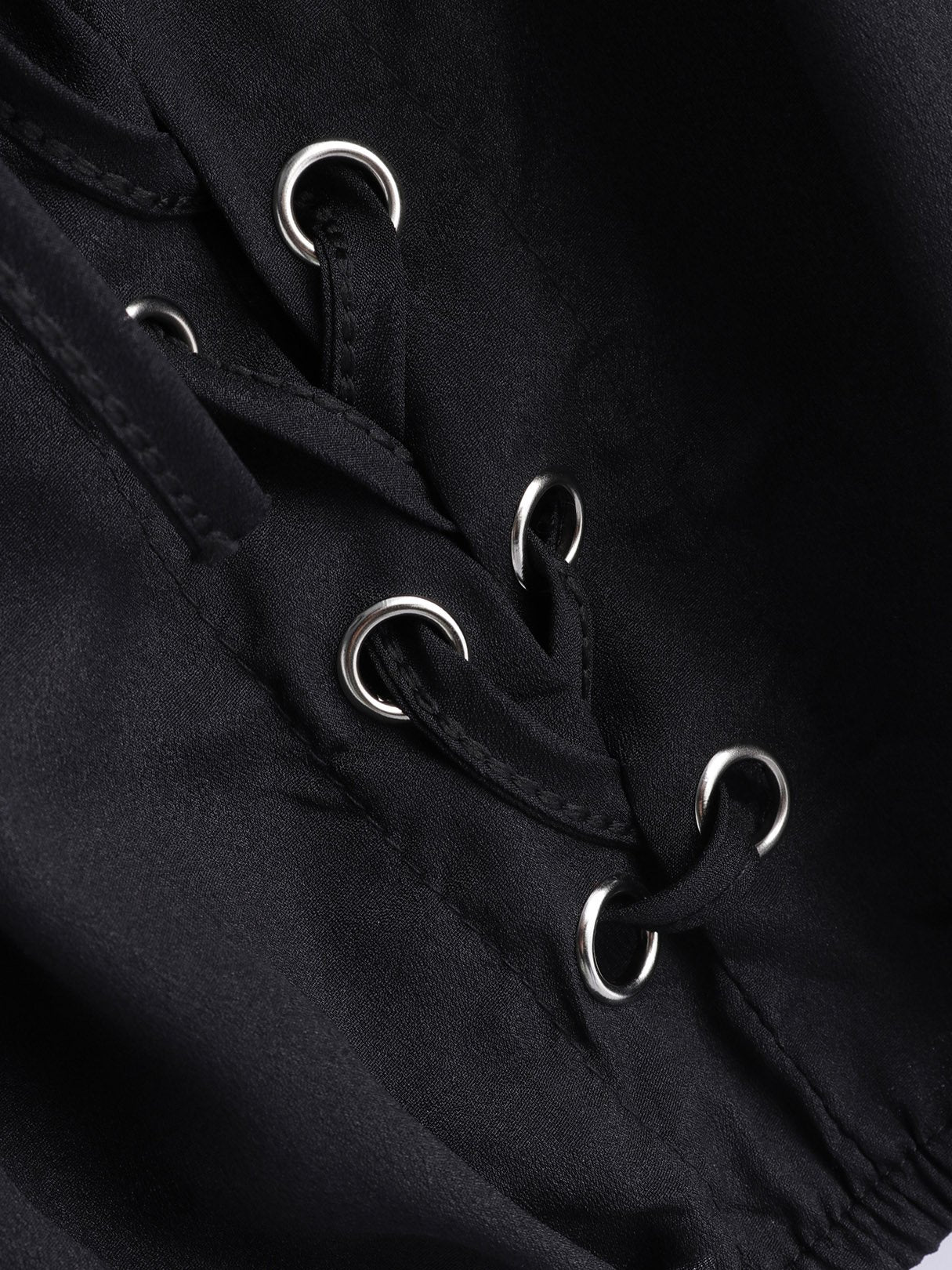 Off The Shoulder Plain Lace-Up Long Sleeve Black Blouses