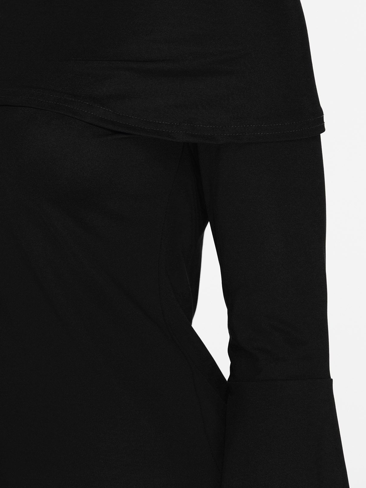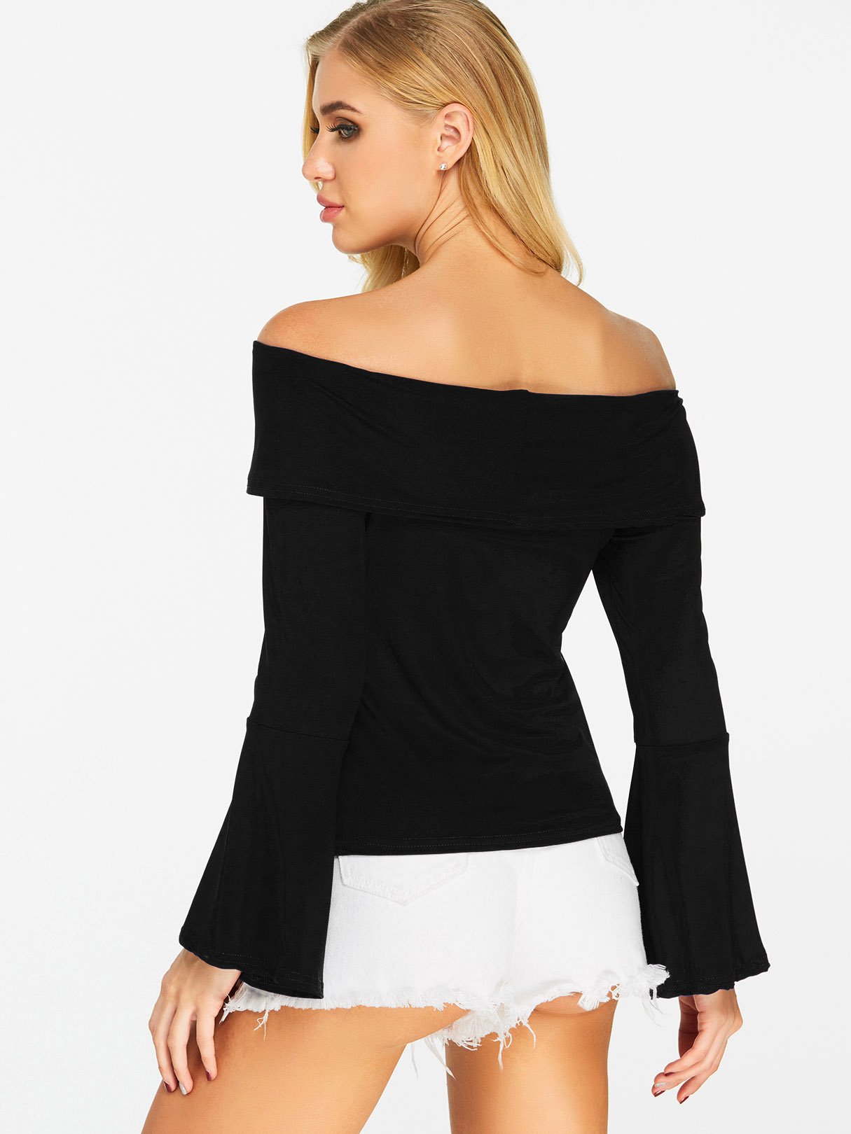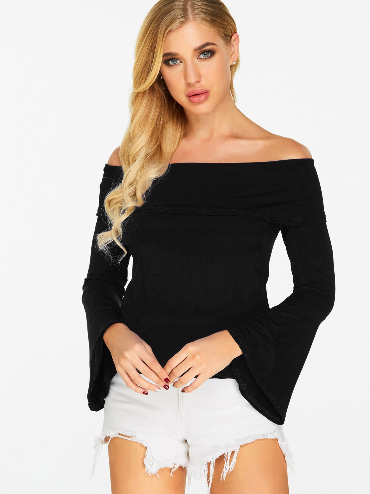 Off The Shoulder Plain Long Sleeve Black Blouses