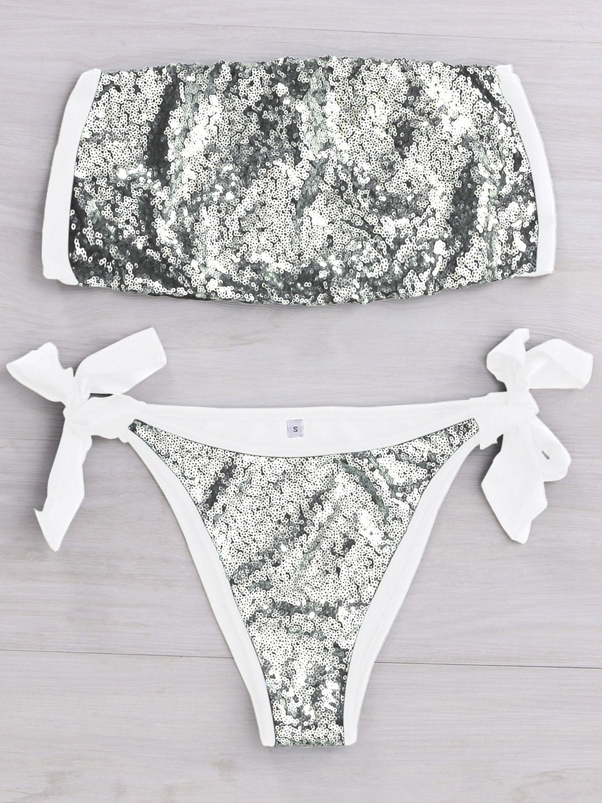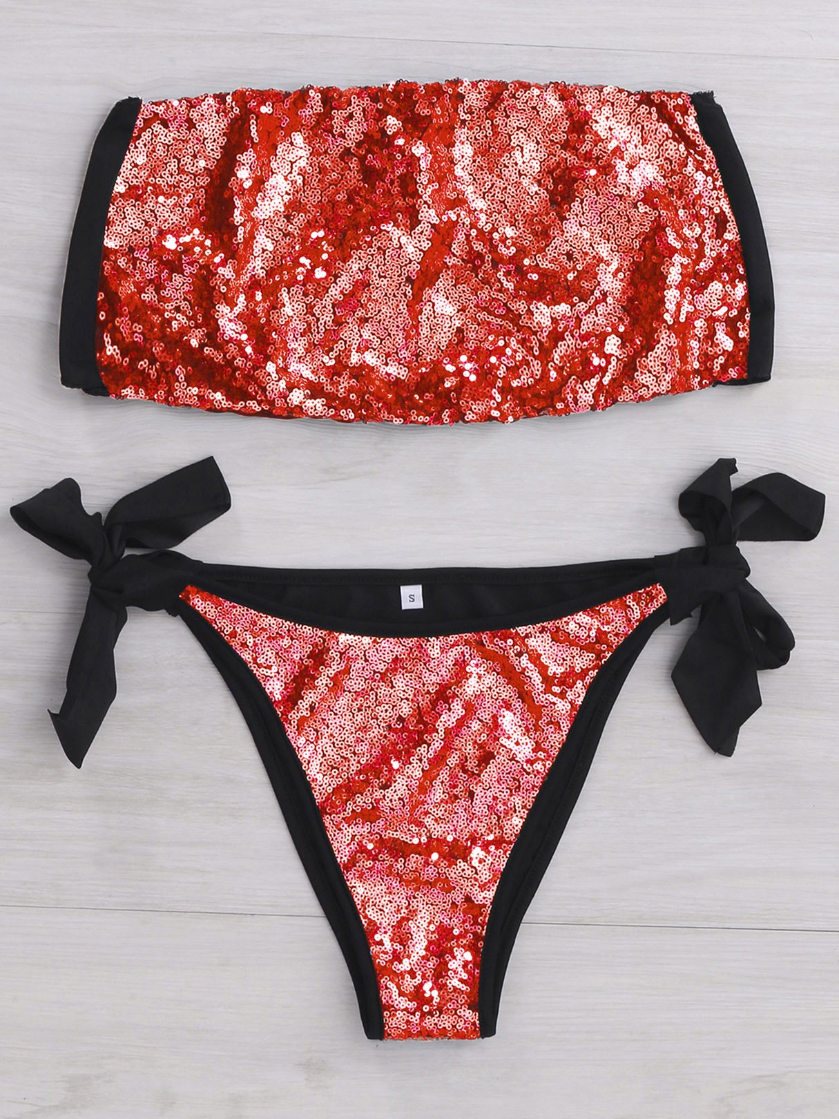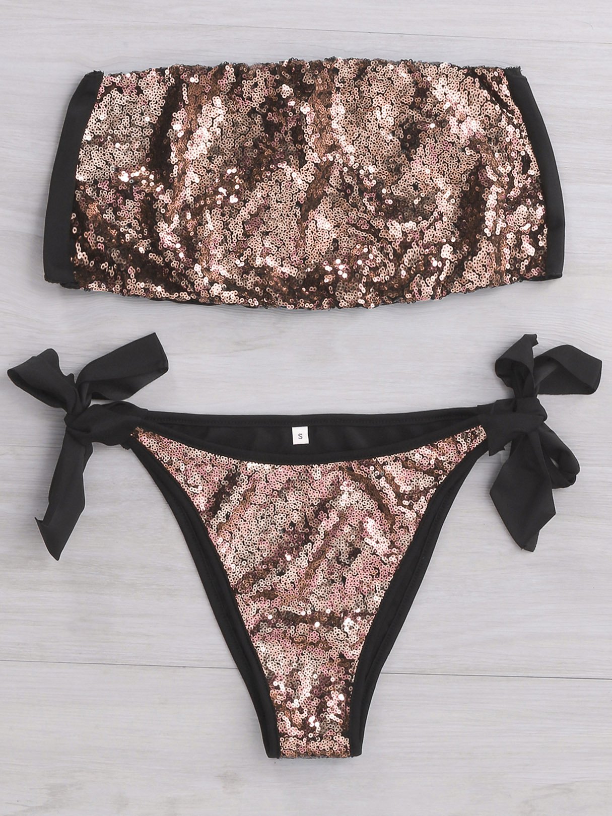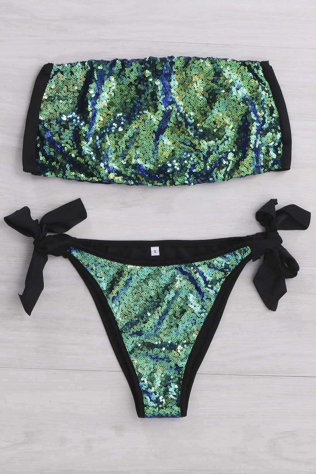 Off The Shoulder Sleeveless Sequins Embellished Bikinis