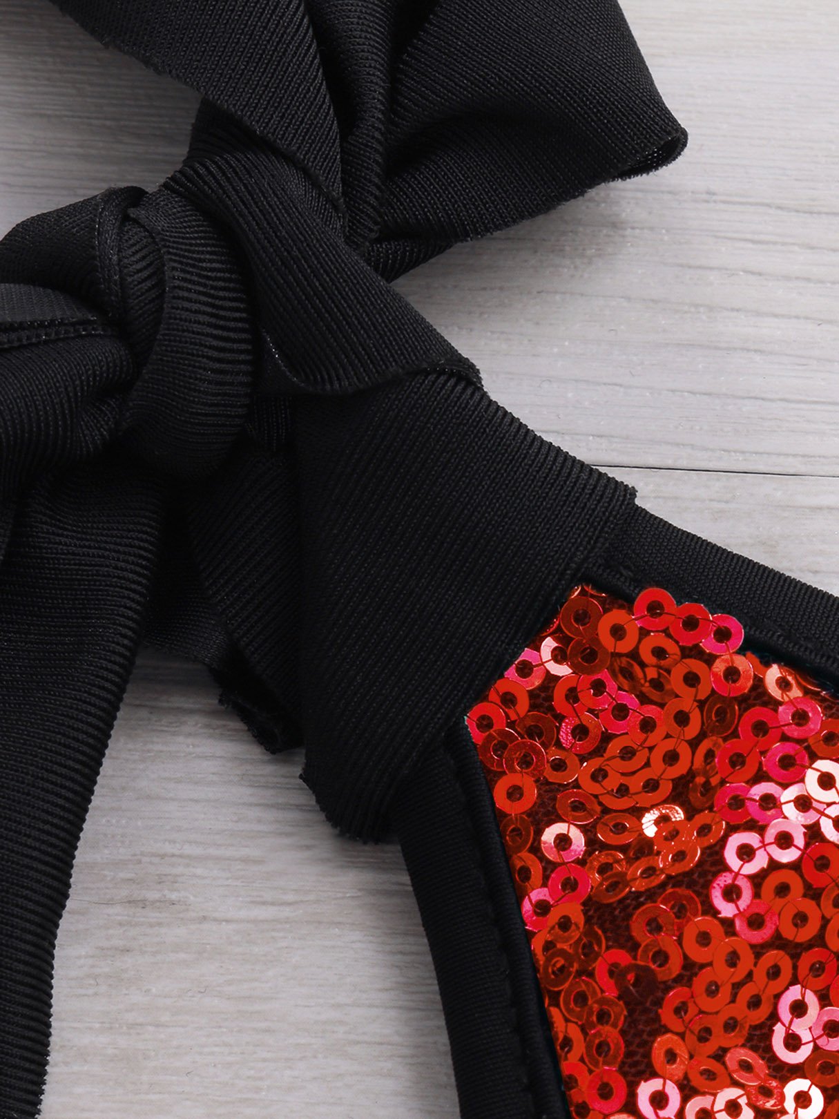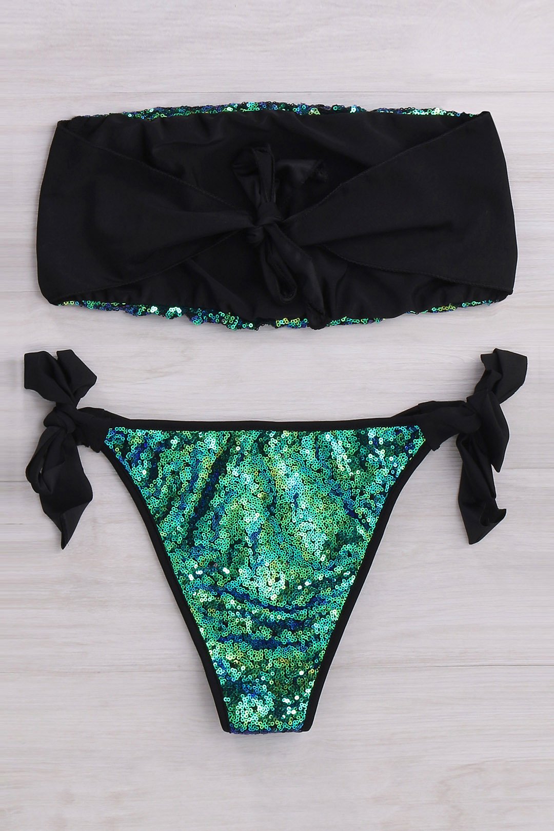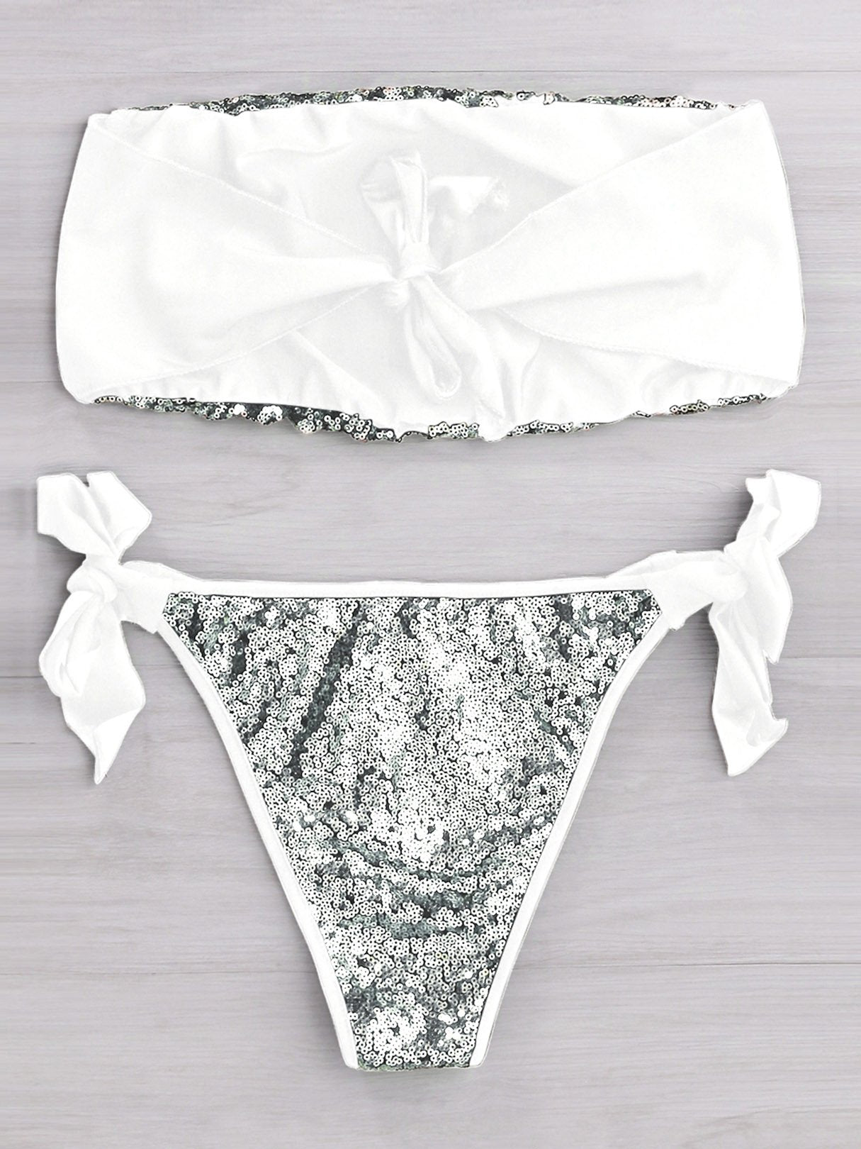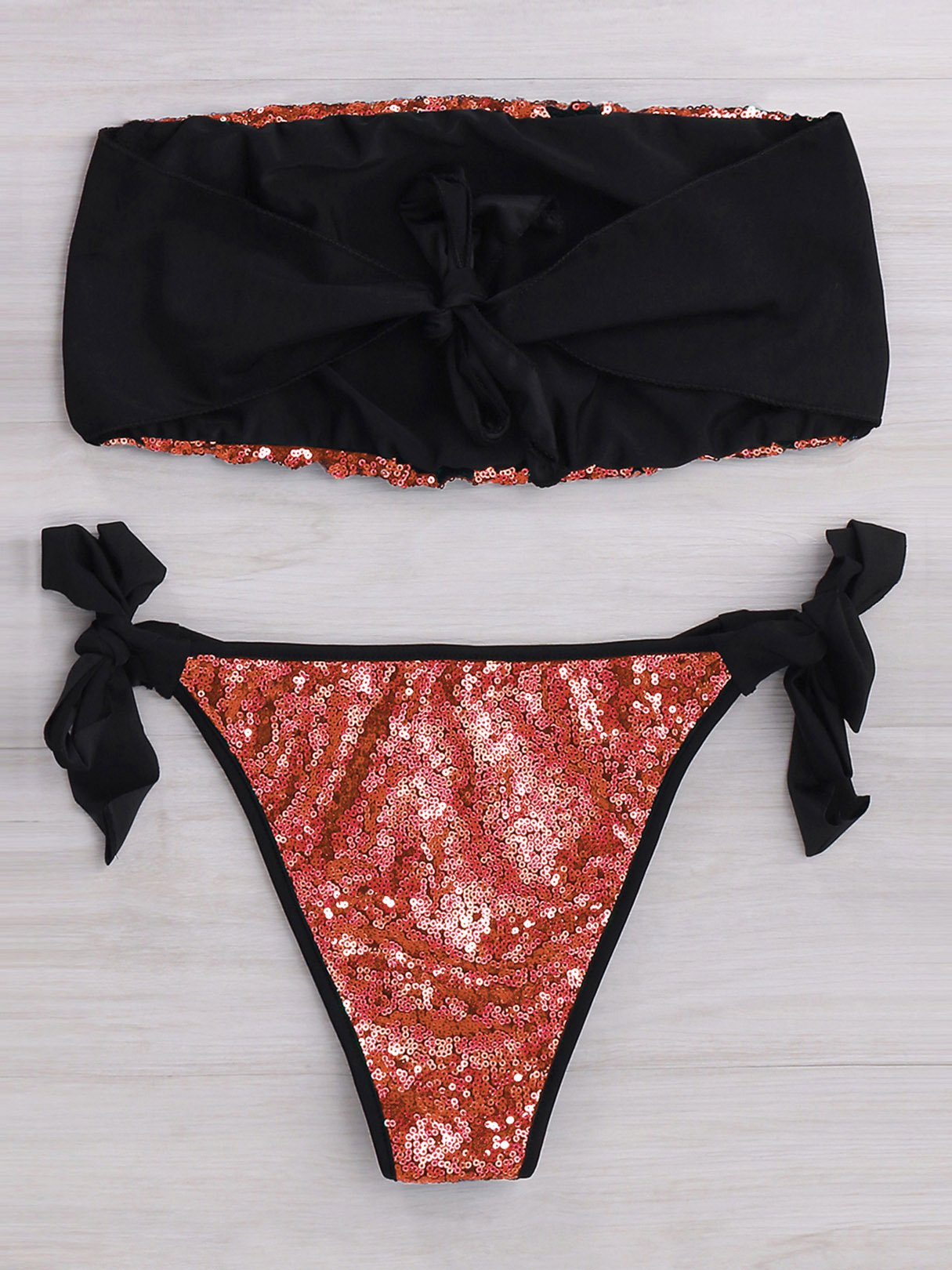 Off The Shoulder Sleeveless Sequins Embellished Bikinis
