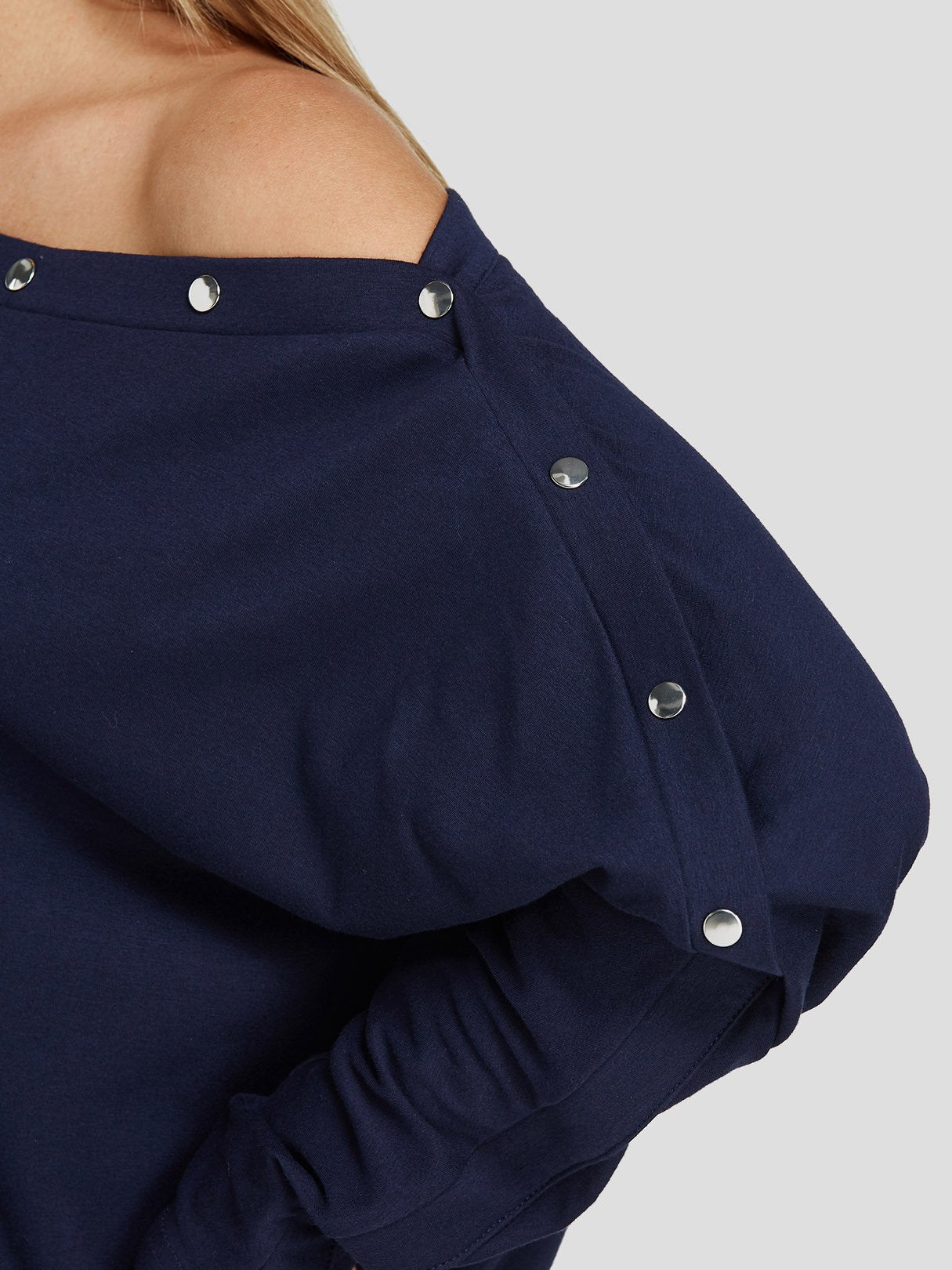 One Shoulder Long Sleeve Navy Blouses - Navy / S is backordered and will ship as soon as it is back in stock.