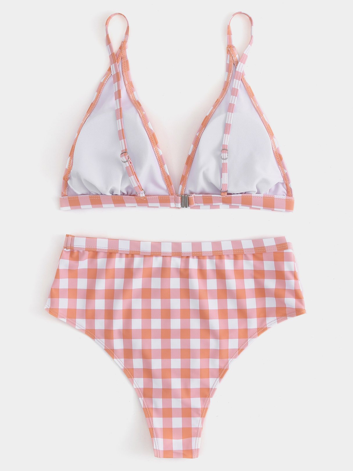Orange V-Neck Sleeveless Grid High Waist Two Piece Bikinis