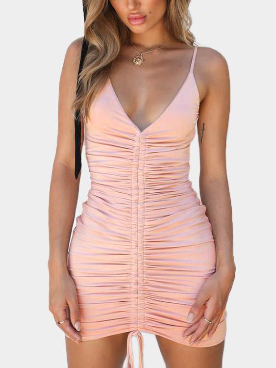 Material:Polyester,SpandexNeckline:Deep V NeckSeason:Spring,SummerSleeves:SleevelessStyle:Sexy StyleDetail:Adjustable Shoulder Straps,Backless Design,Lace-Up DesignHem Design:Bodycon HemLength:MiniFit:Bodycon FitOccasion:Party,Cocktail