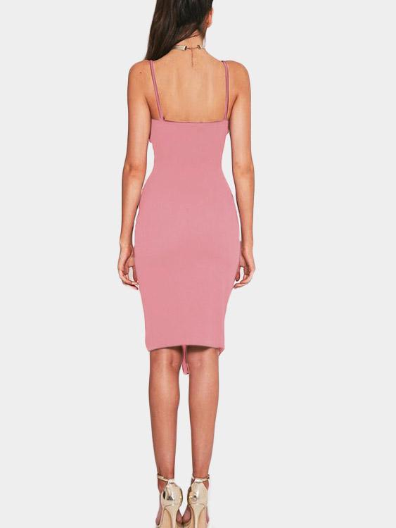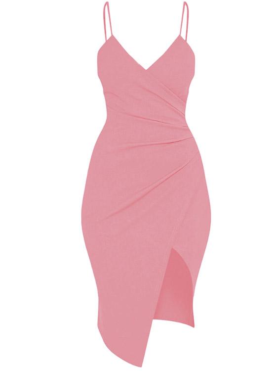 Pink Deep V Neck Sleeveless Plain Slit Wrap Irregular Hem Sexy Dresses